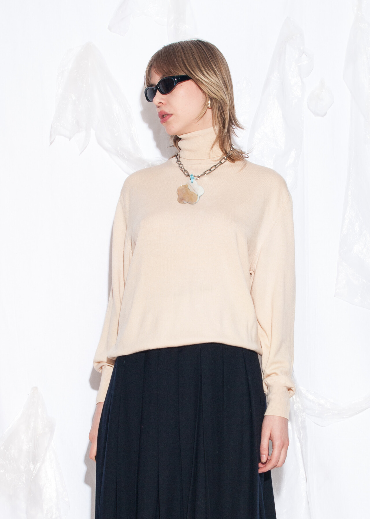 Vintage 90s Gispa Wool Turtleneck Jumper in Beige
