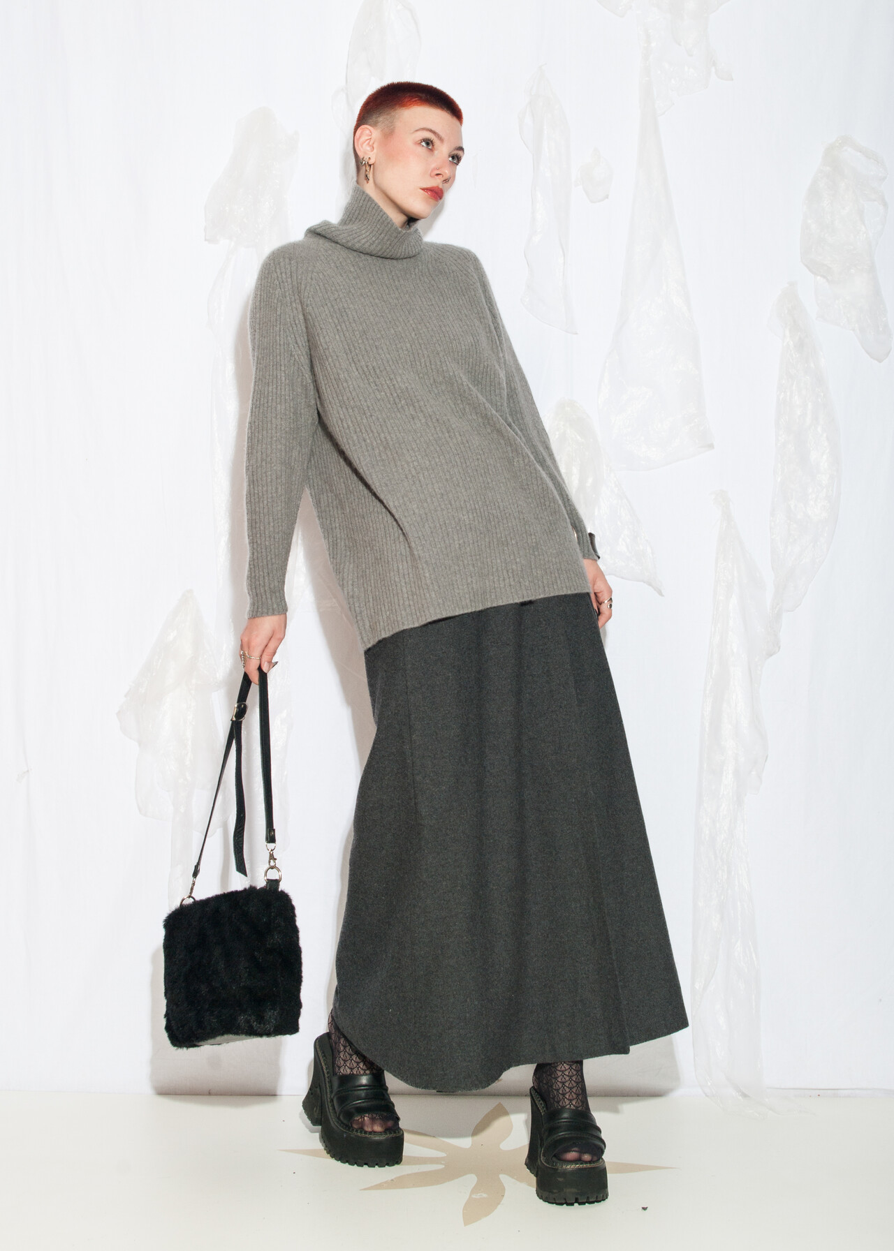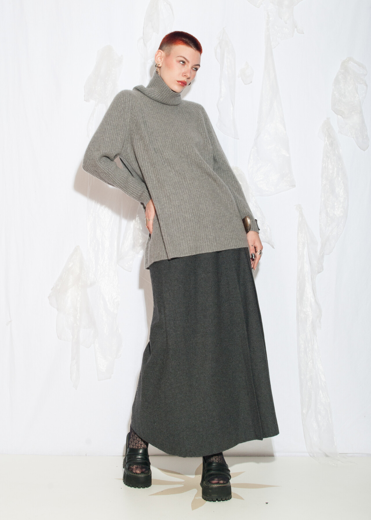 Tags: 2000s style clothing, cashmere knitwear, grey knit sweater, minimaist, office siren look, officecore, whi, y2k vintage fashion