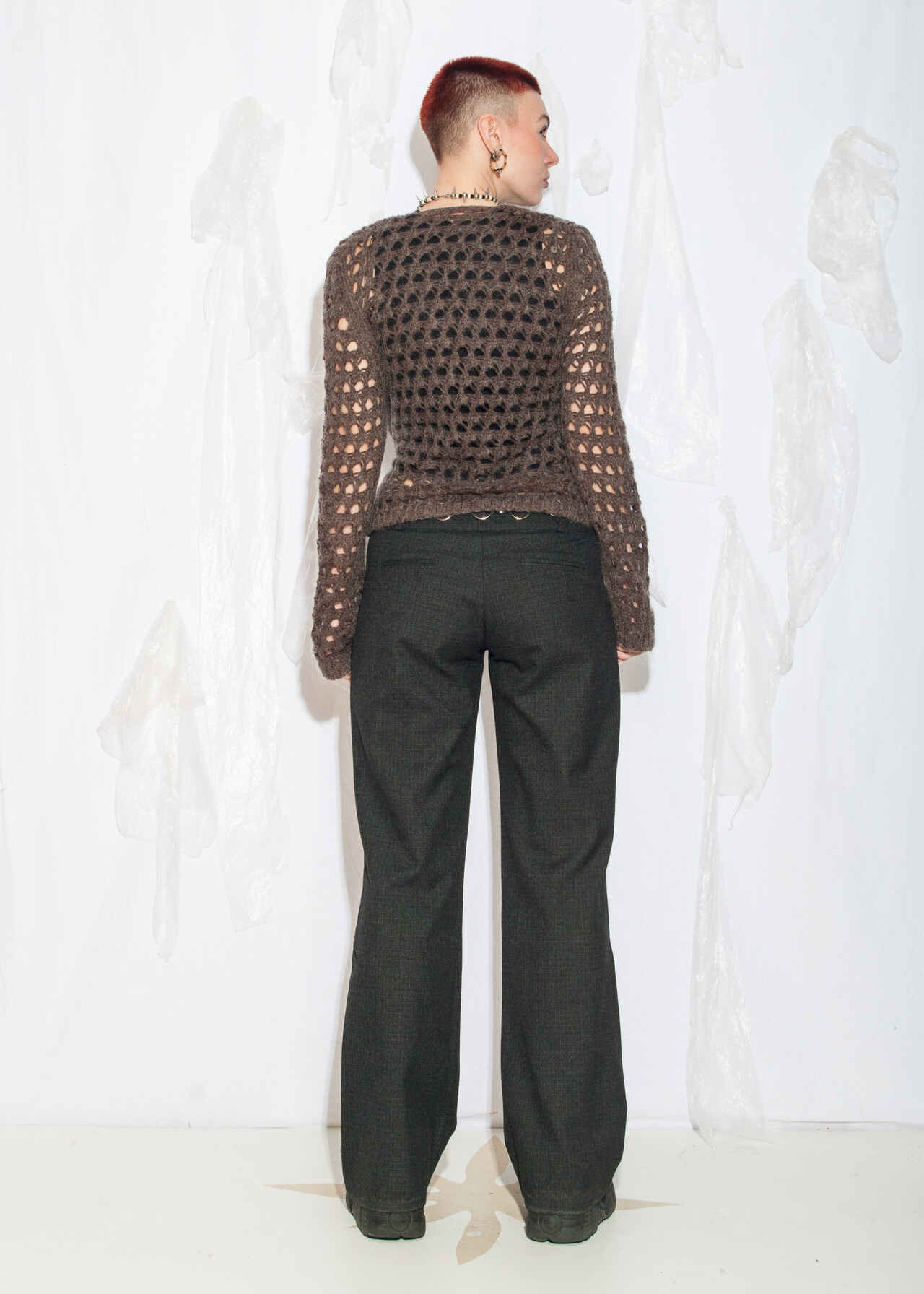 Vintage Y2K Fishnet Knit Cardigan in Brown