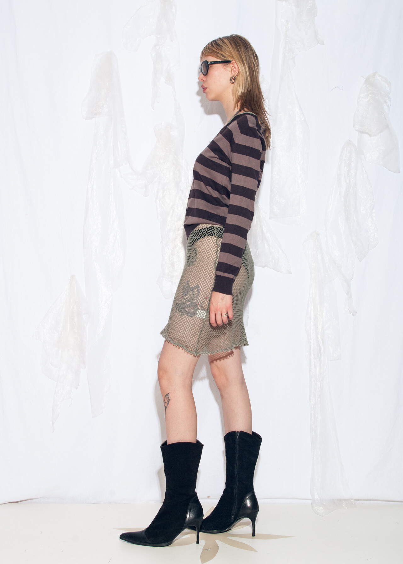 This Y2K vintage knit jumper is the cozy time capsule you need to relive your early 2000s grunge era with a brown striped hug.