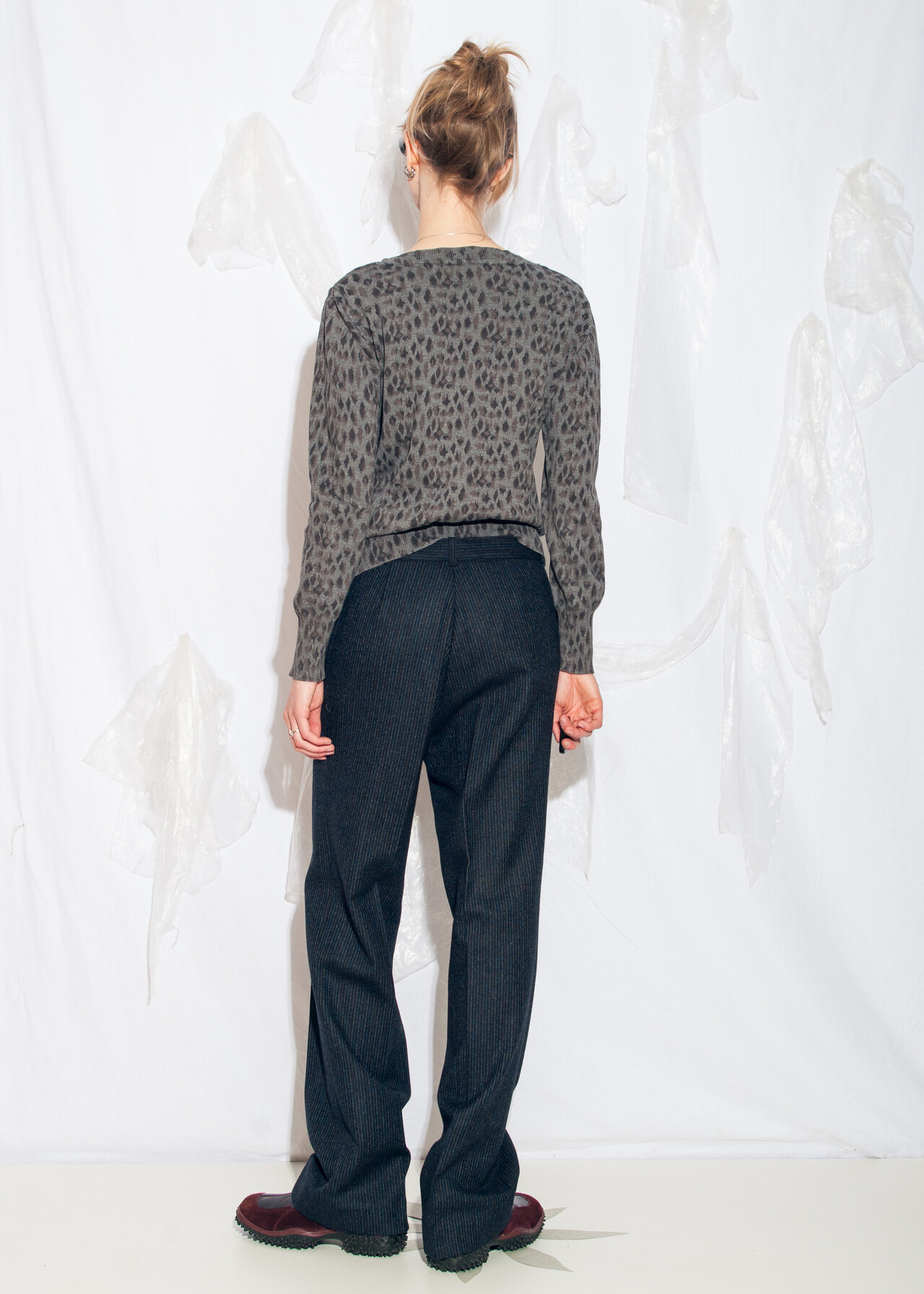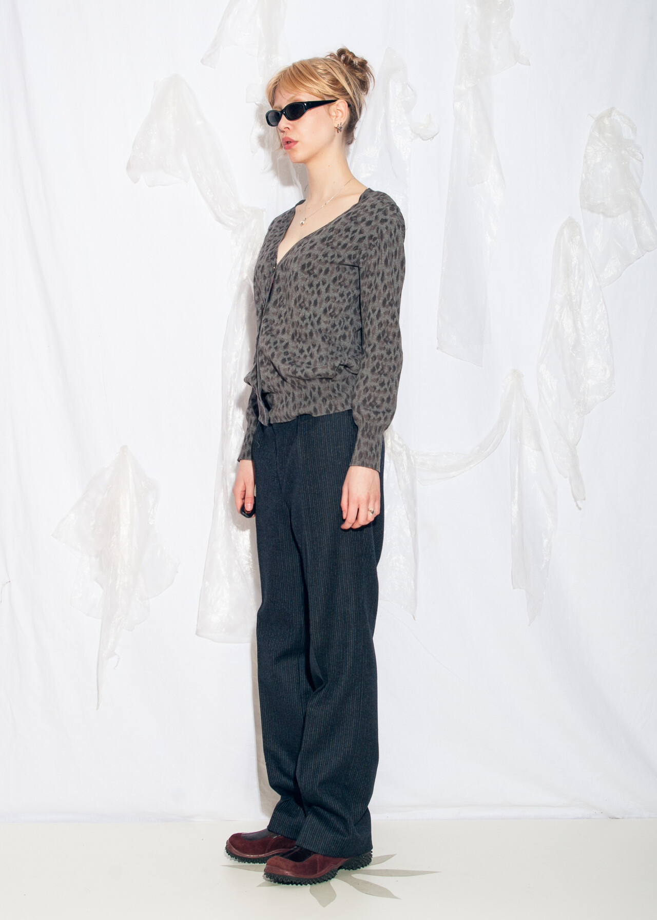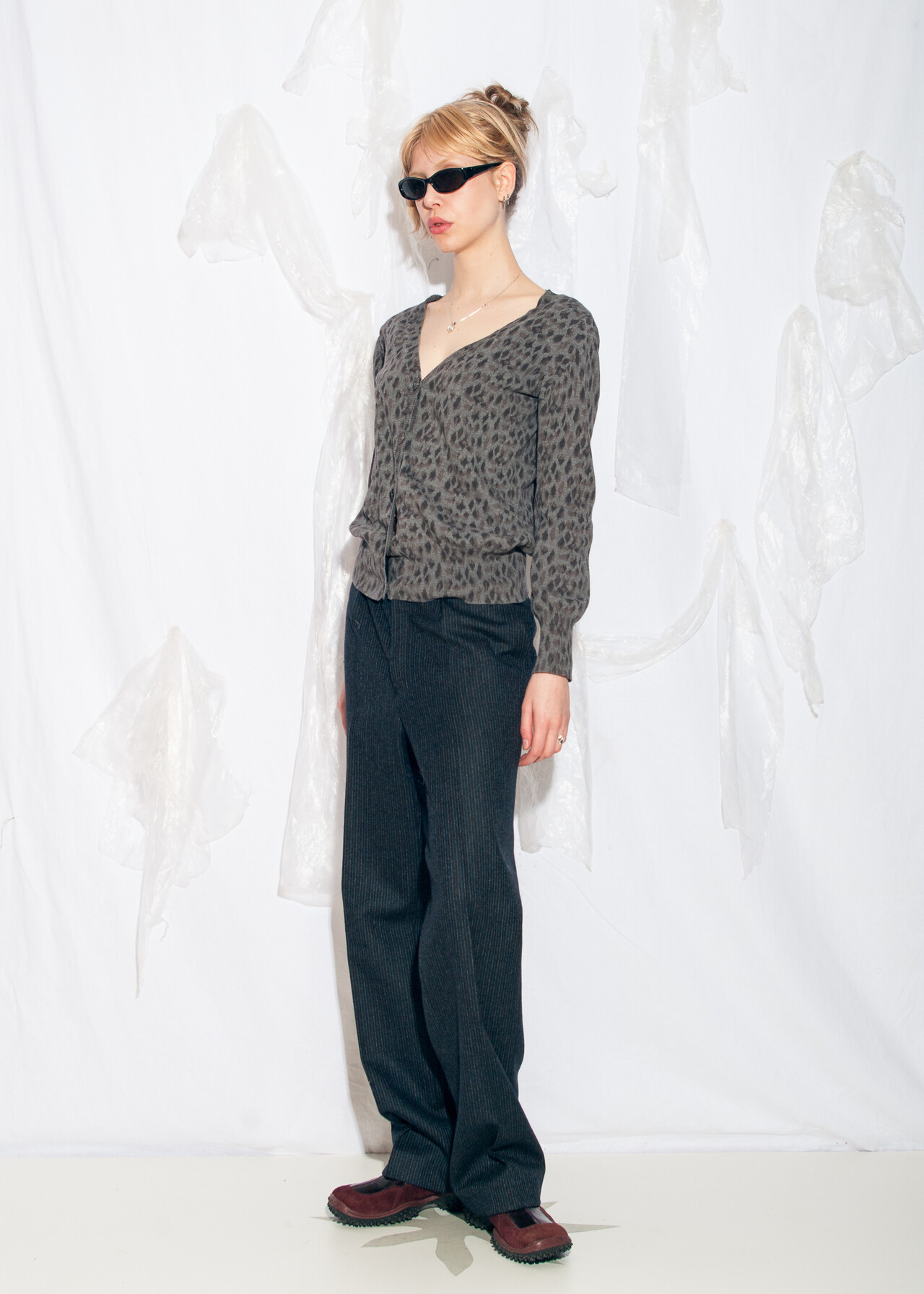 Tags: 2000s vintage style, dark coquette, knitted cotton top, leopard pattern top, oversized cardigan, punk jumper, y2k grunge clothing