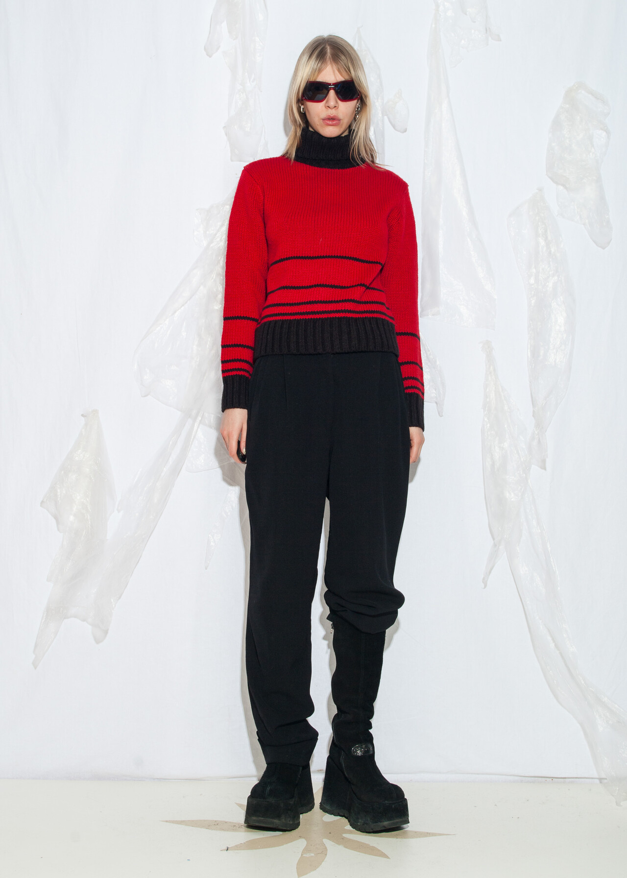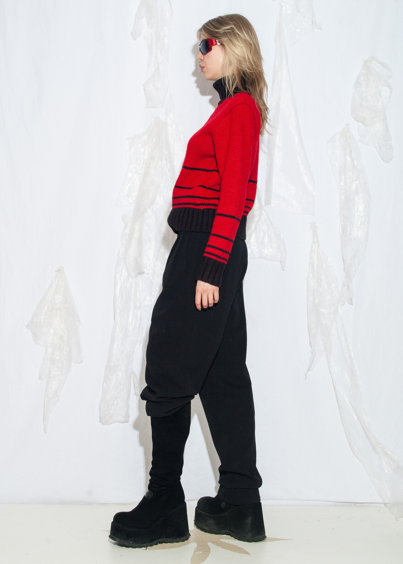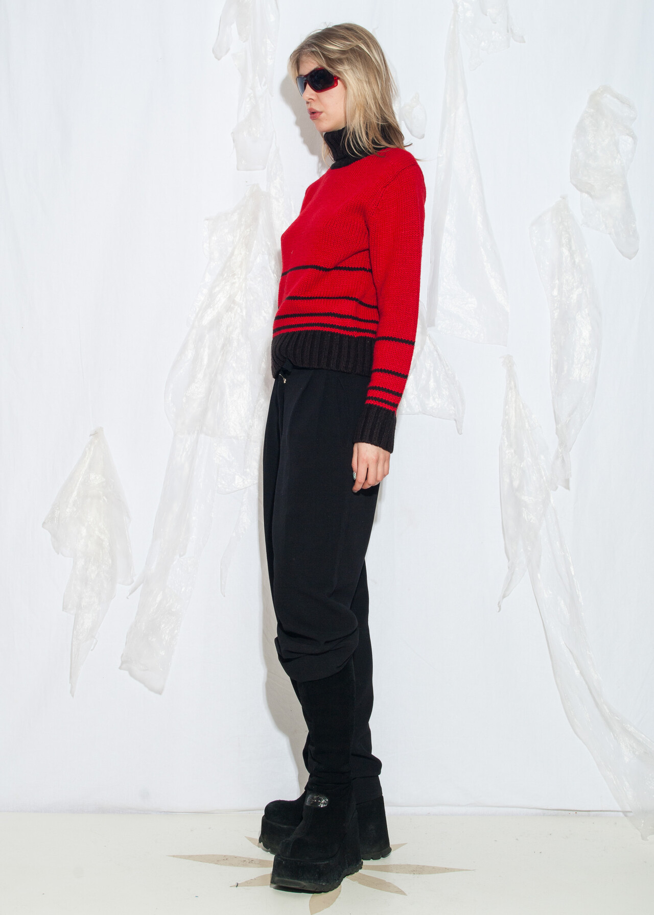 Vintage Y2K Striped Knit Jumper in Red Wool Cotton