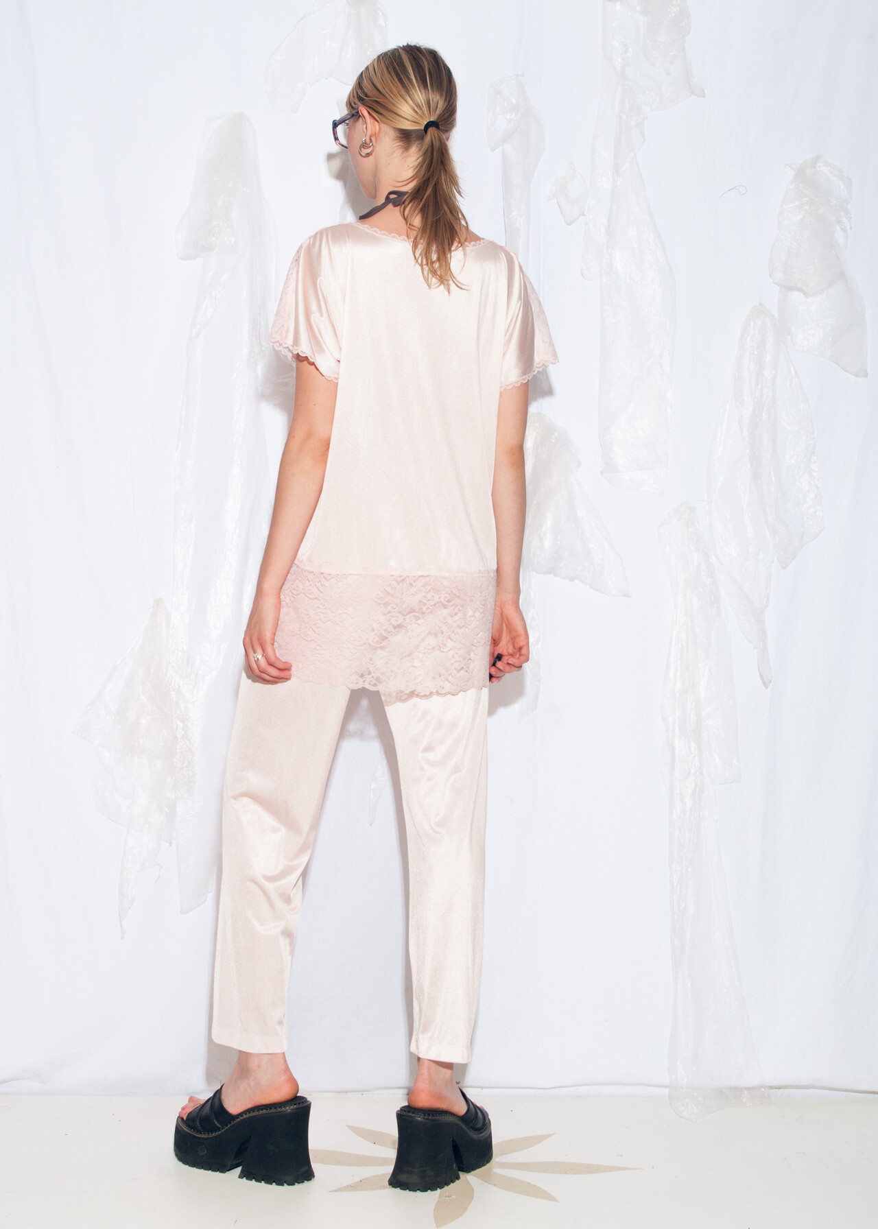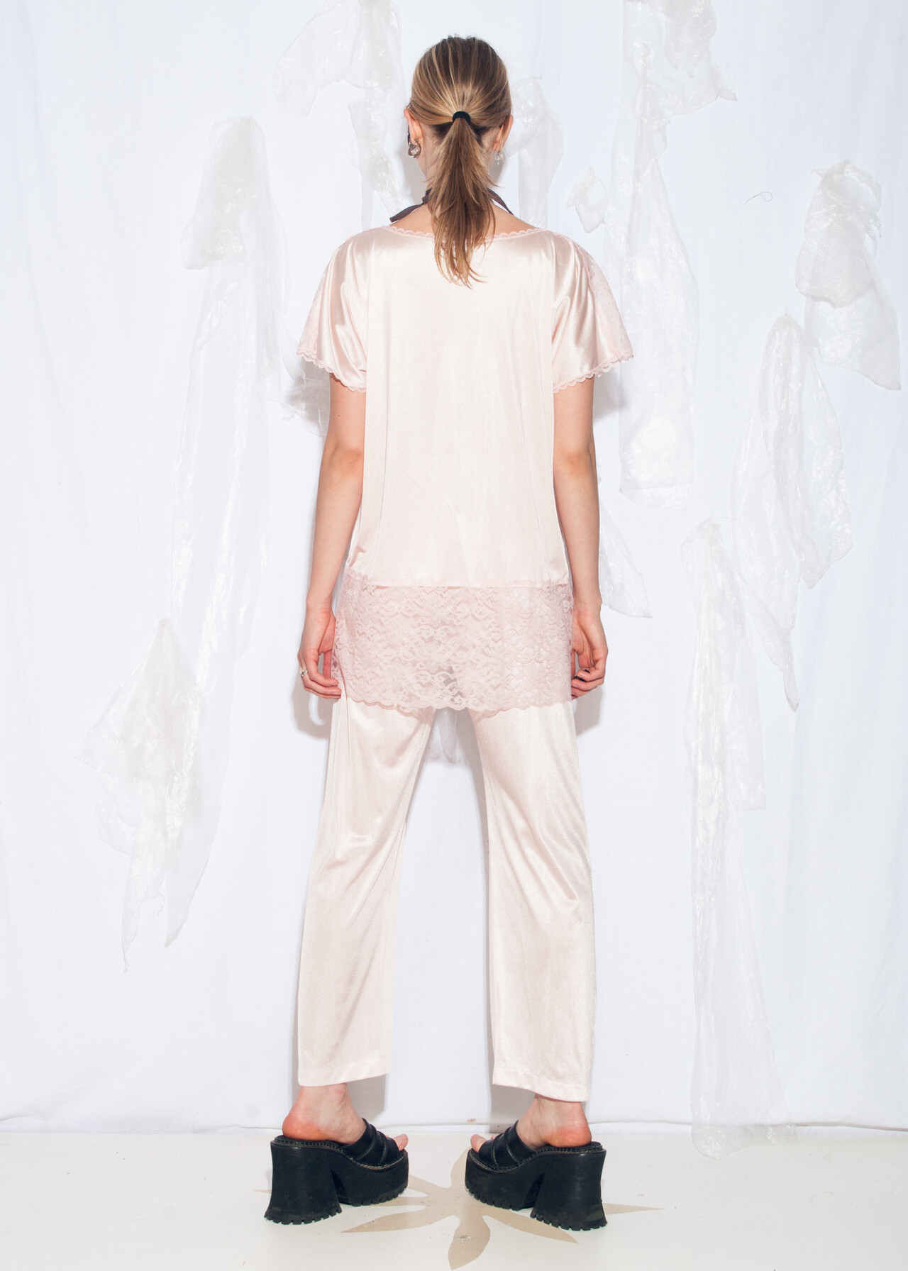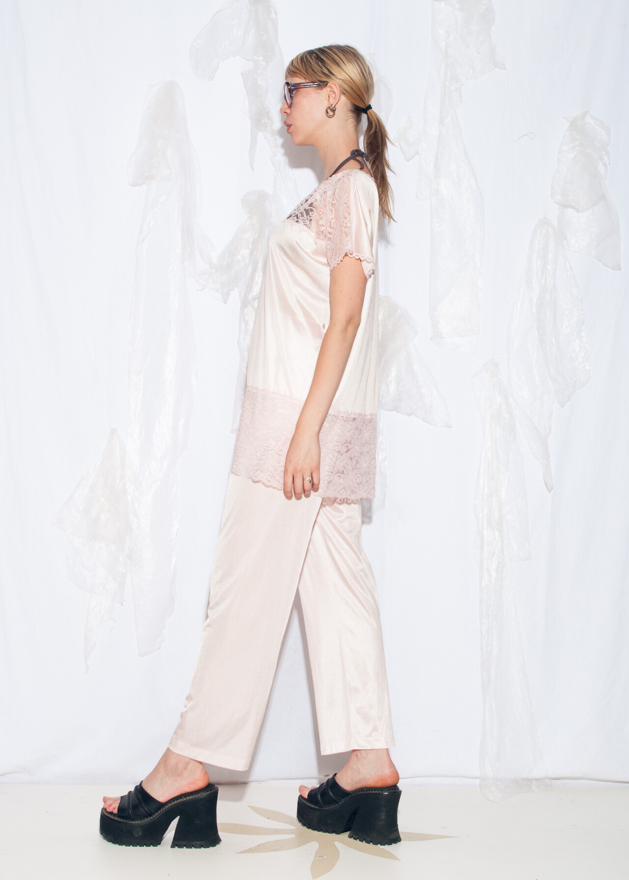 Vintage 80s Kayser Lace Pajama Set in Pastel Pink