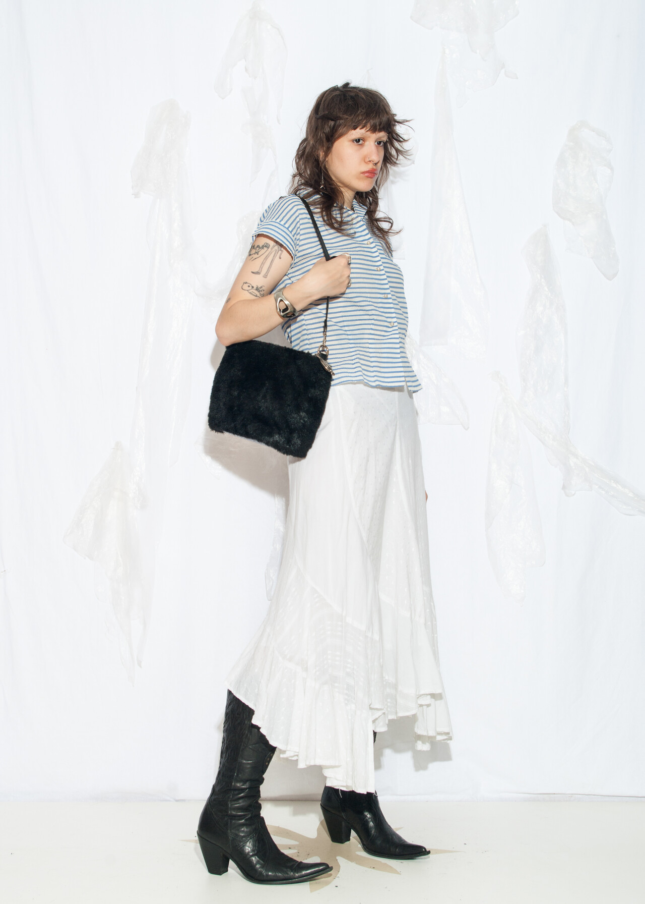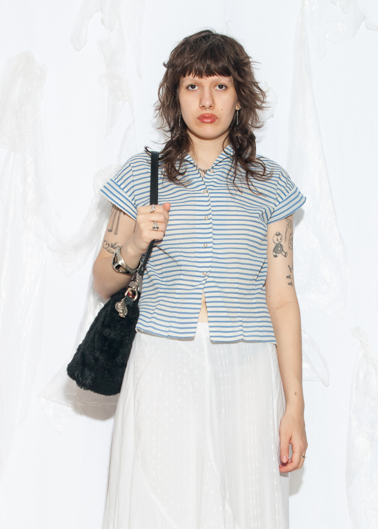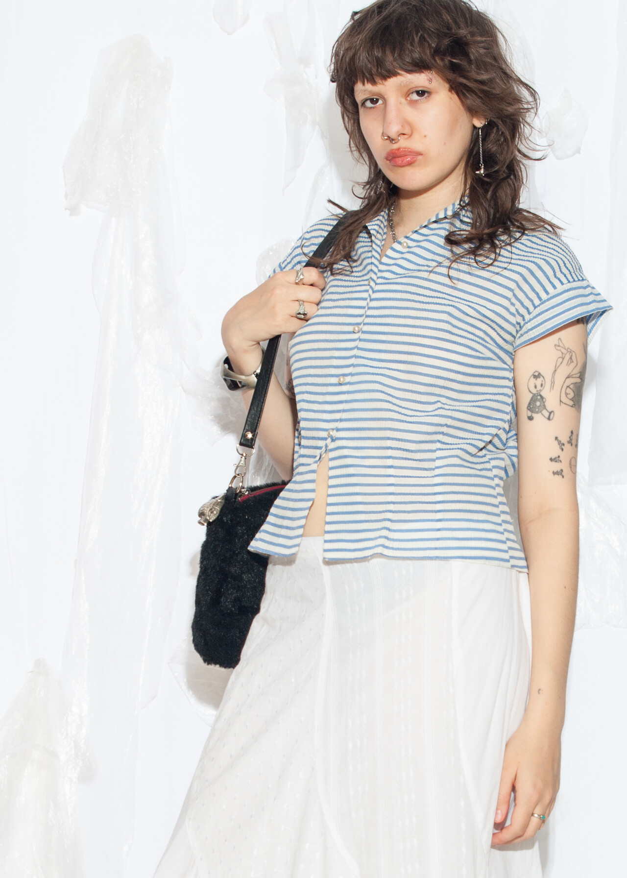 Tags: 50s vintage fashion, bead buttons, crop blouse, film noir aesthetic, rare vintage find, sailor striped top