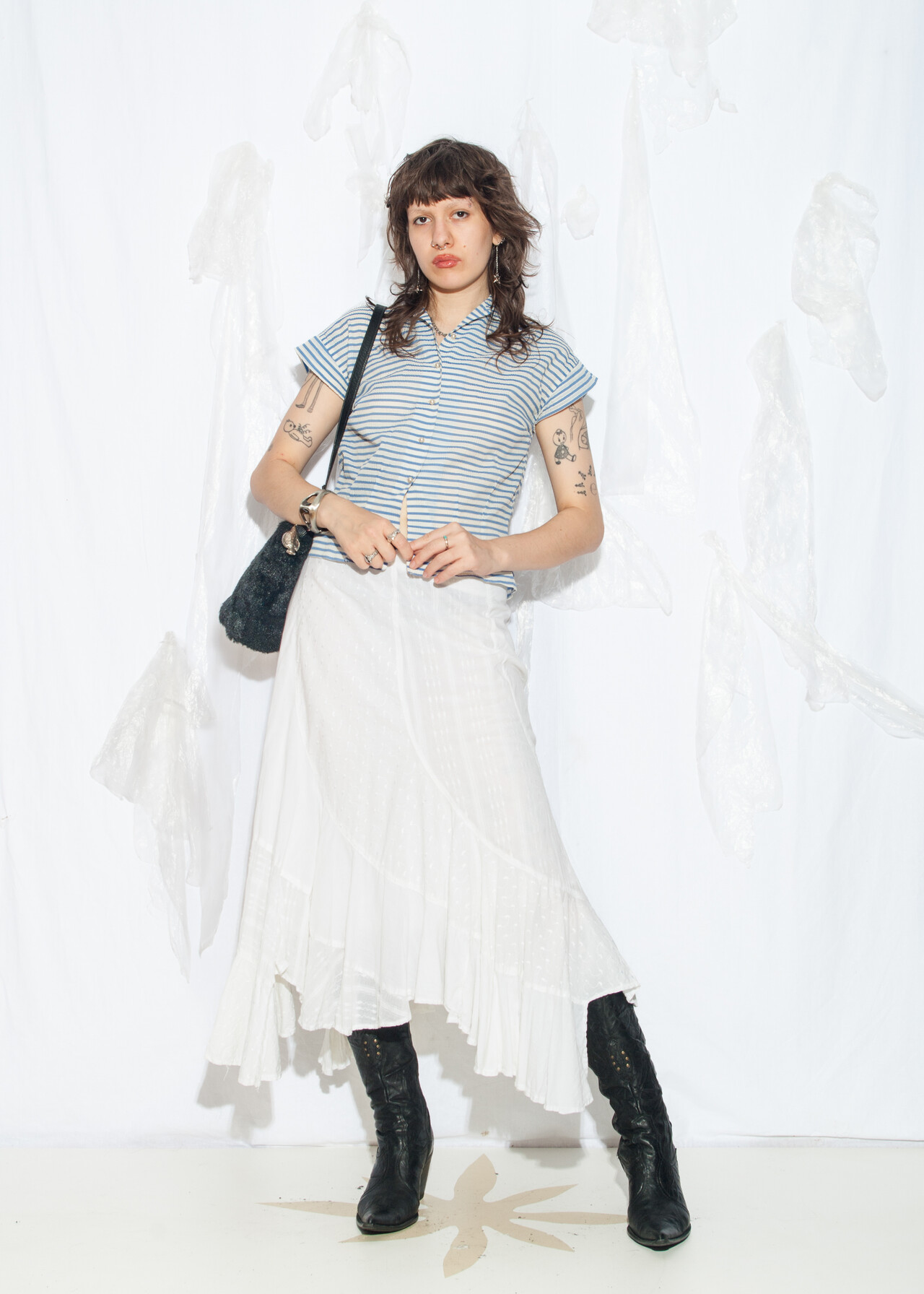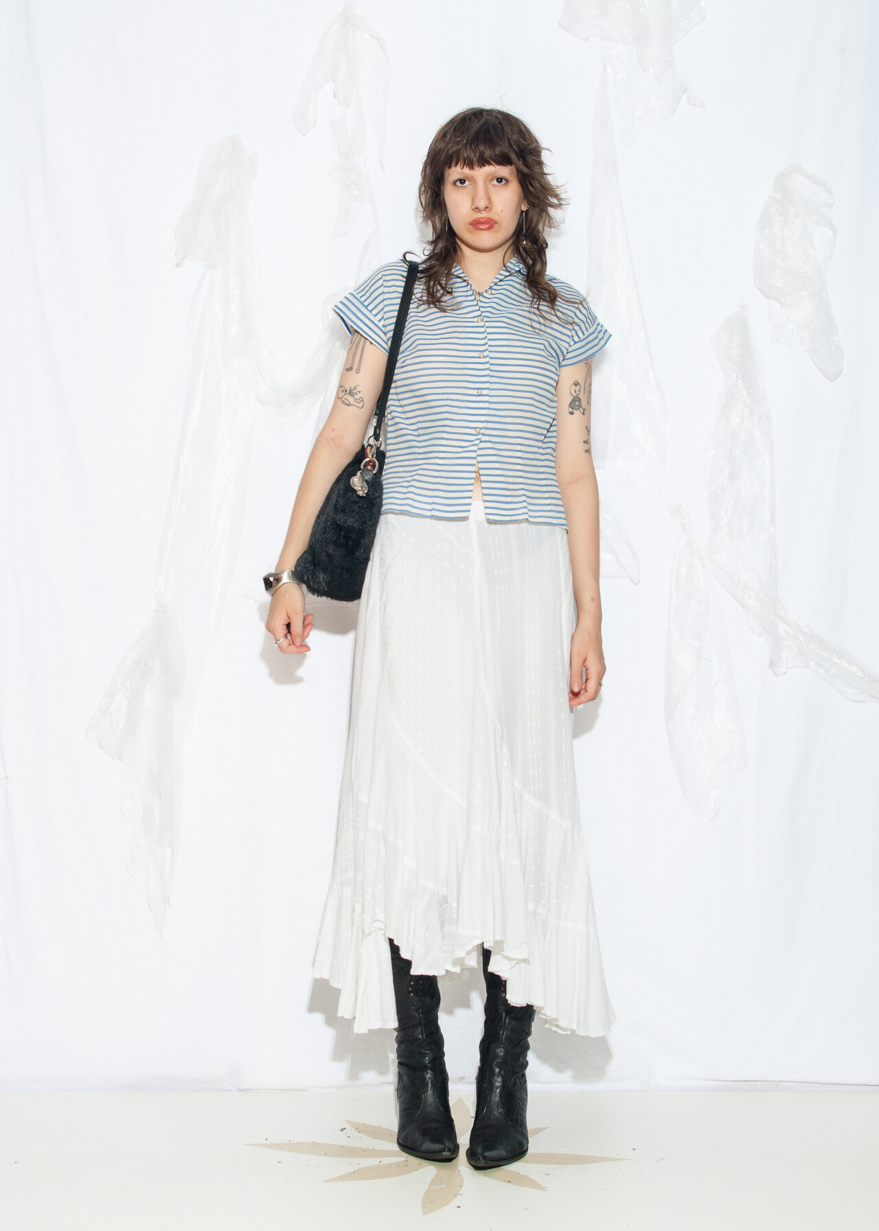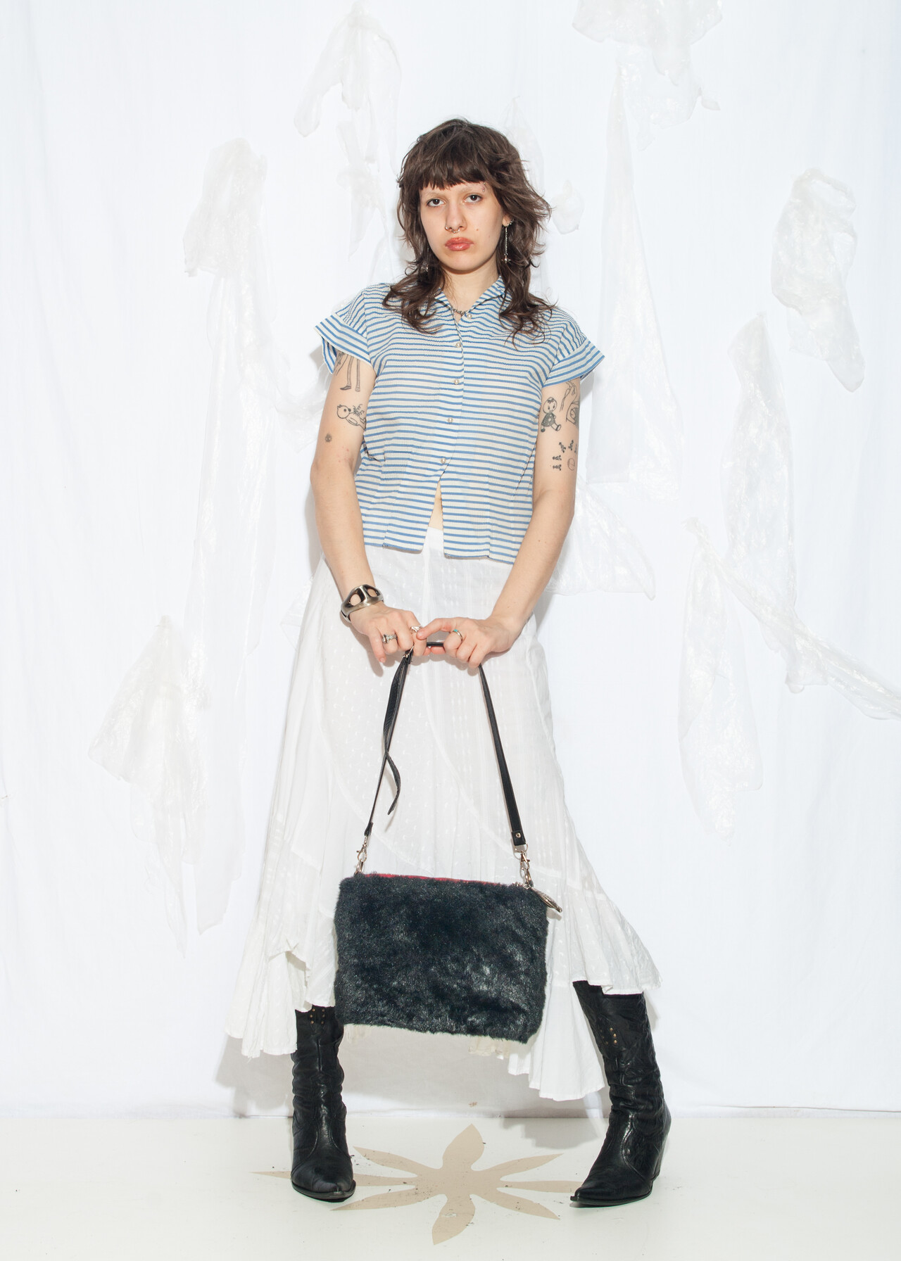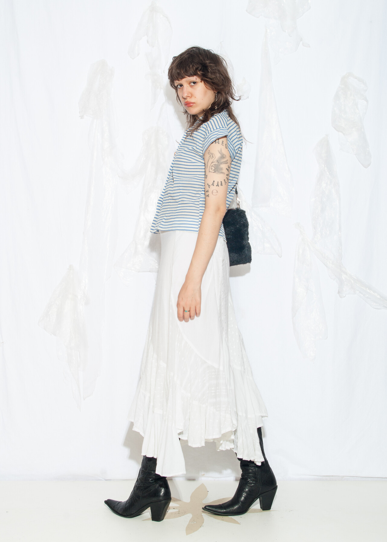 Tags: 50s vintage fashion, bead buttons, crop blouse, film noir aesthetic, rare vintage find, sailor striped top