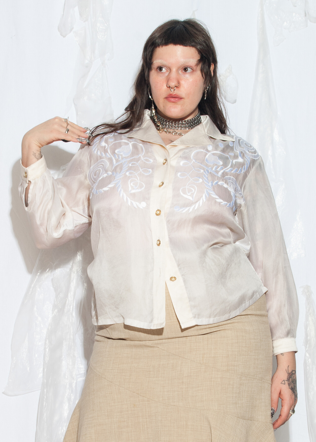 This 90s vintage Escada blouse is your ticket to pure silk, embroidered nautical style, perfect for when you want to channel your inner captain without leaving the shore. Long-sleeved and beige, it’s a designer vintage find that’ll have you navigating fashion seas like a pro.