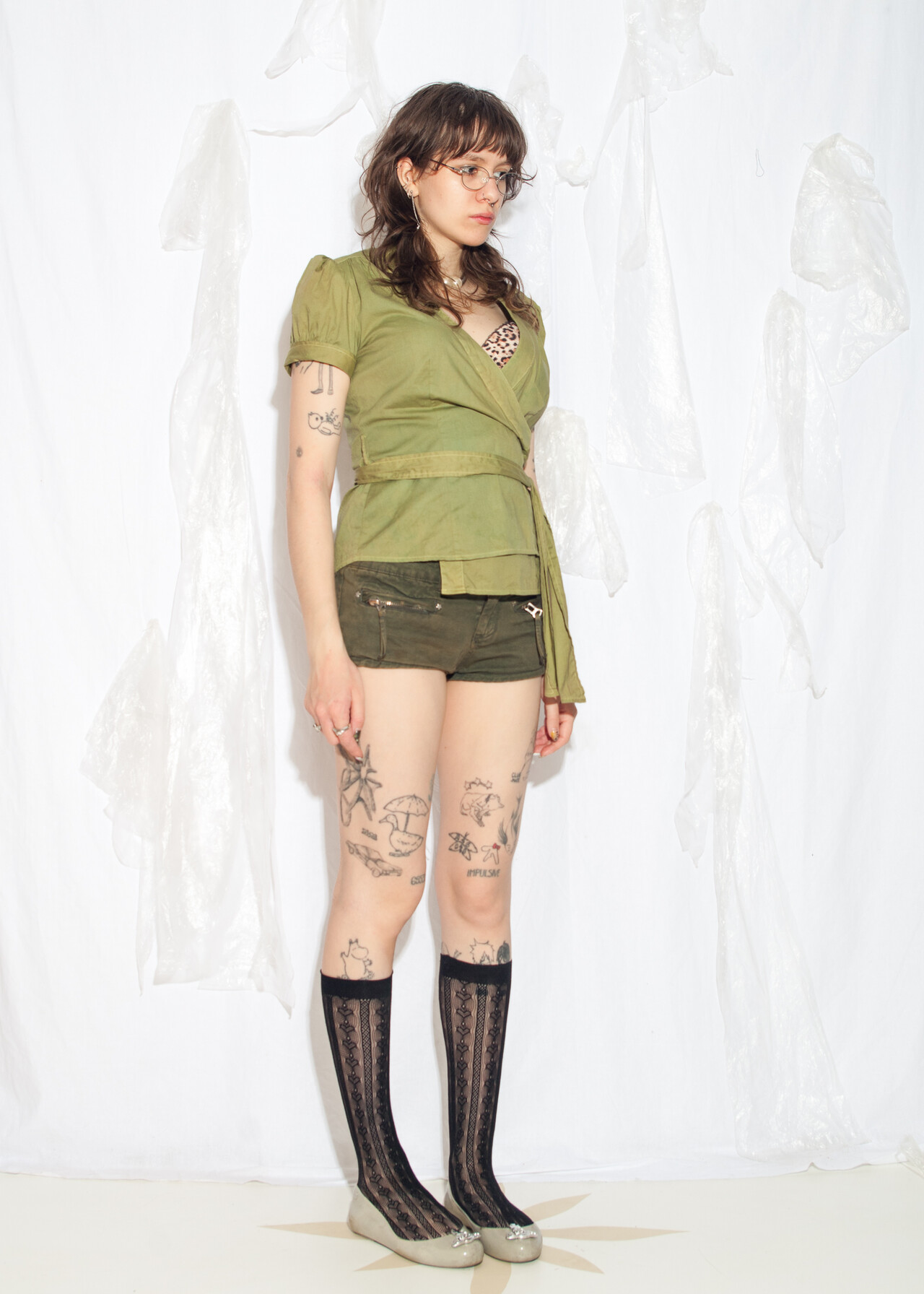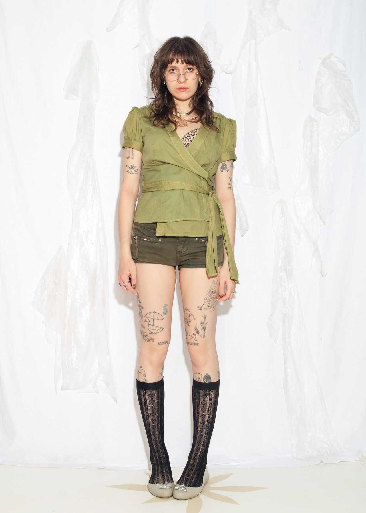 Vintage Y2K Overlap Blouse in Mud Wash Green