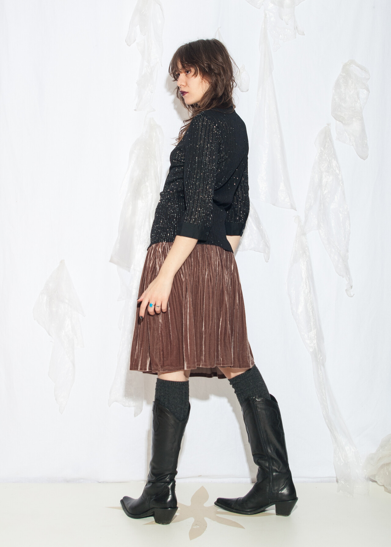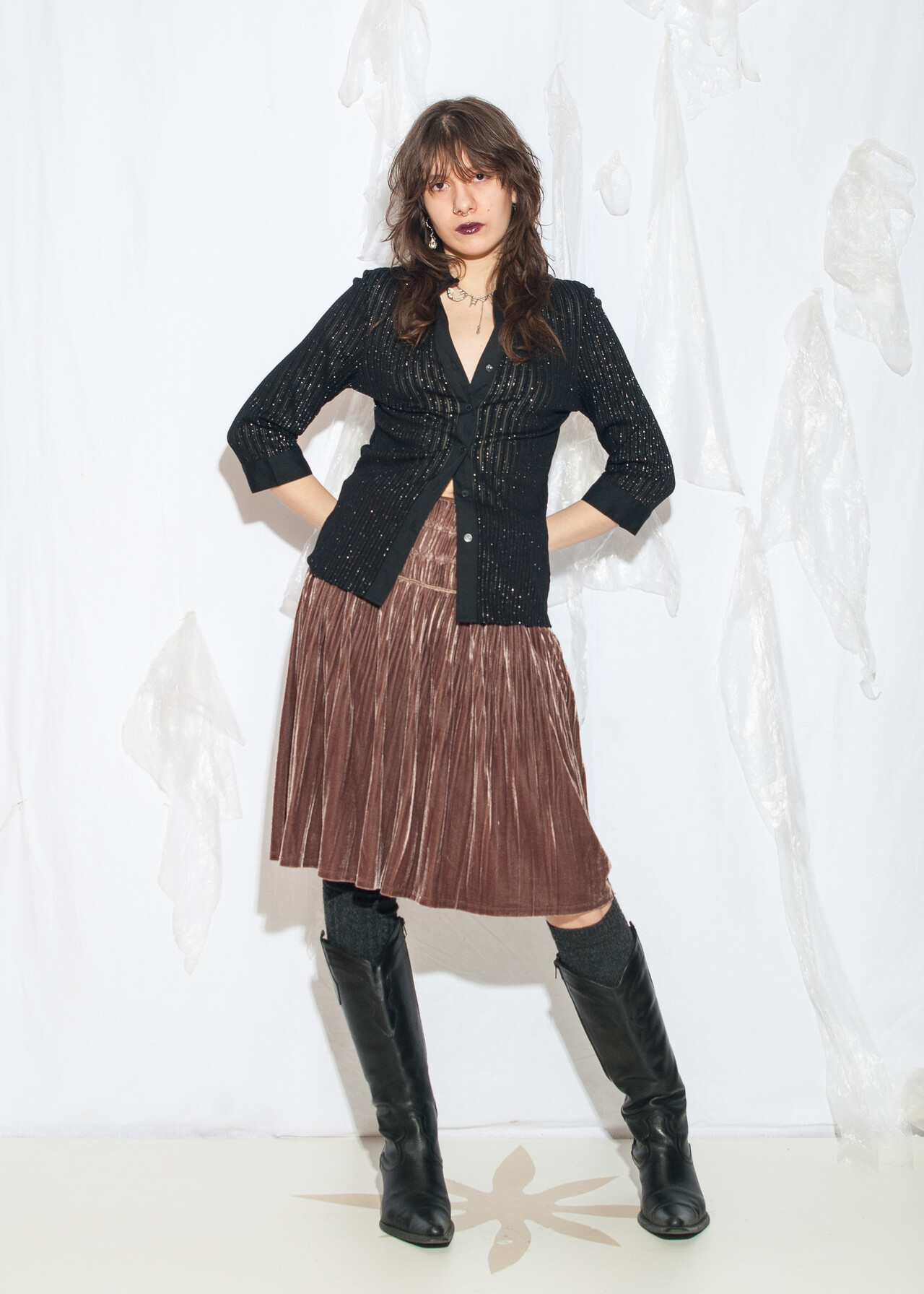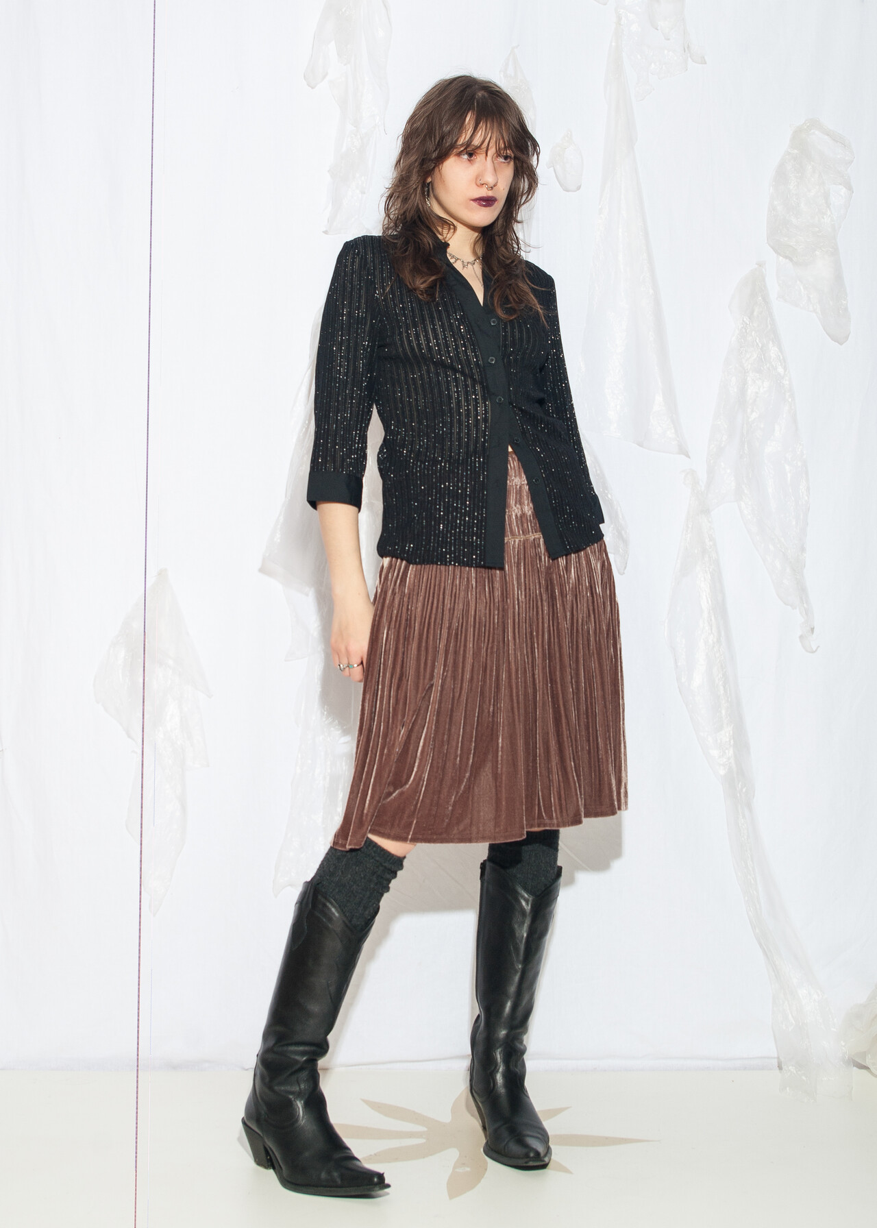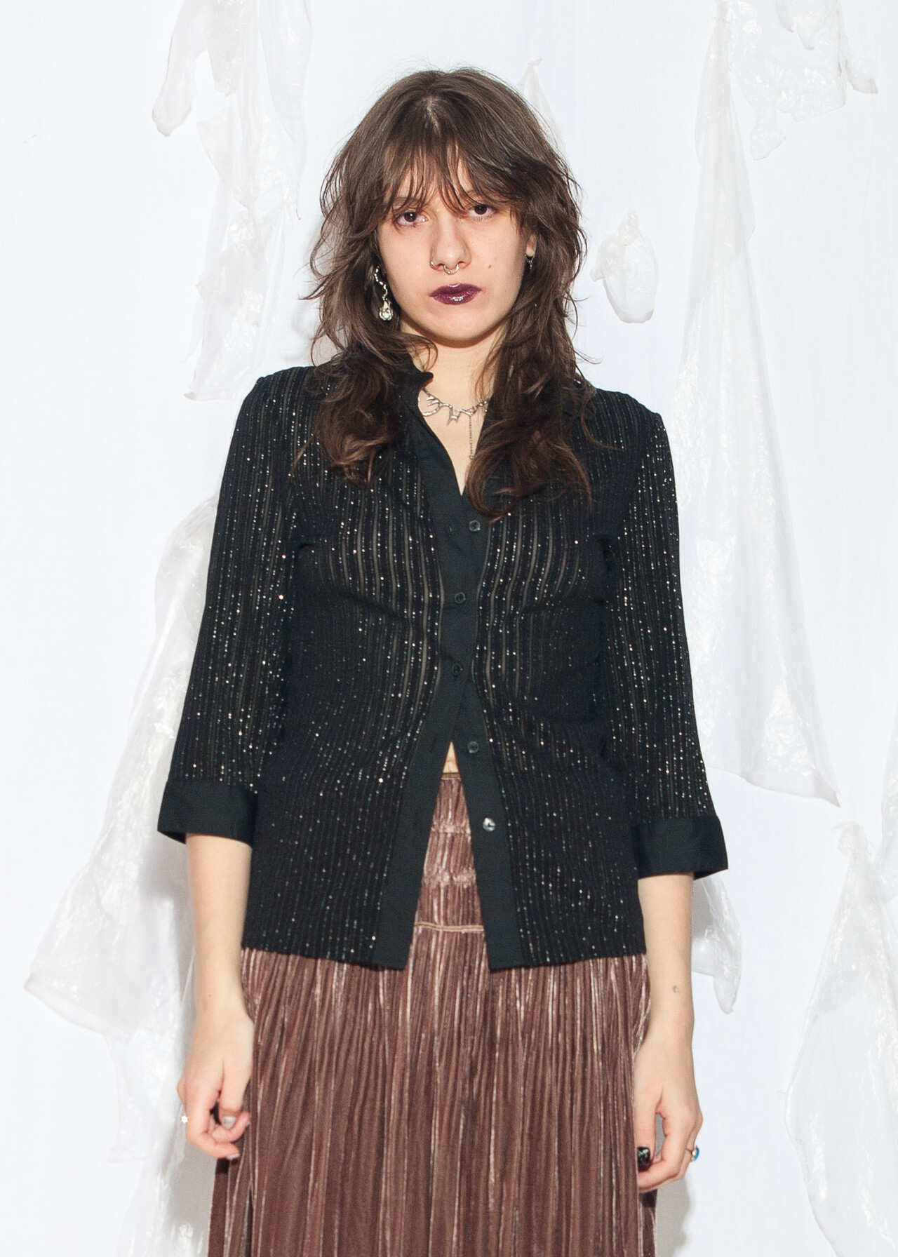 This Y2K vintage blouse by Biaggini is a shimmering masterpiece that’ll make you feel like you just stepped out of an early 2000s rom-com. With its slim fit and 3/4 sleeves, it’s the black beauty your wardrobe was missing.