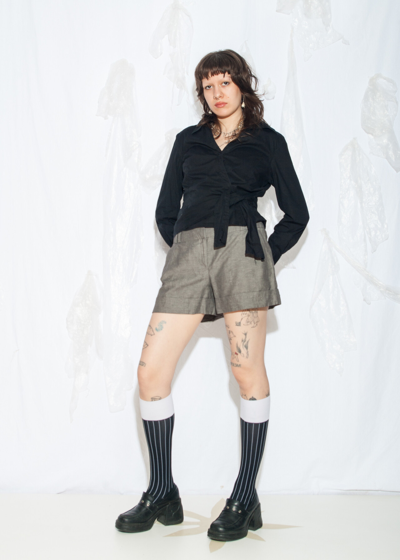 Be the first to review “Vintage Y2K Wrap Shirt in Black Cotton” Cancel reply