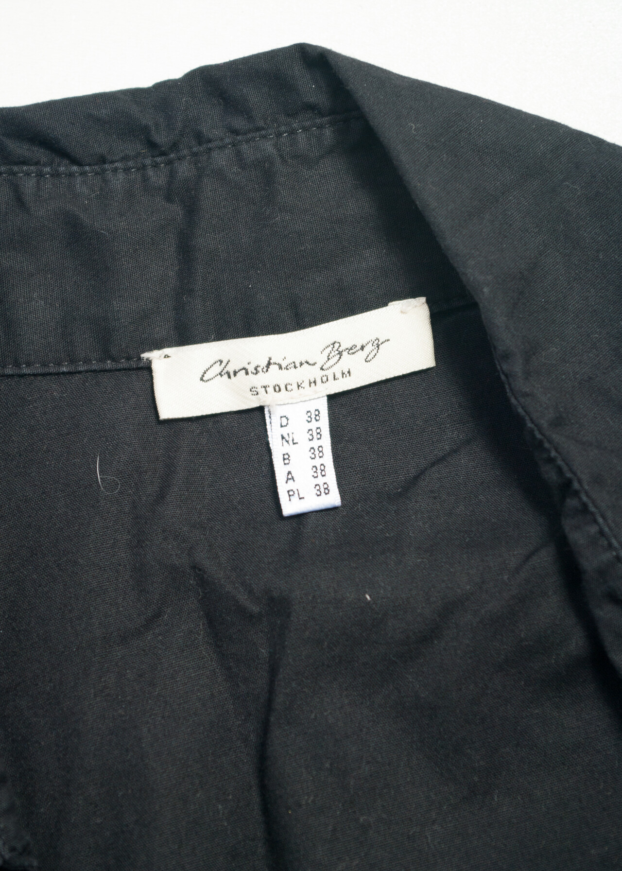 Tags: 2000s style clothing, black cotton blouse, designer vintage, office siren, wrap shirt, y2k vintage fashion