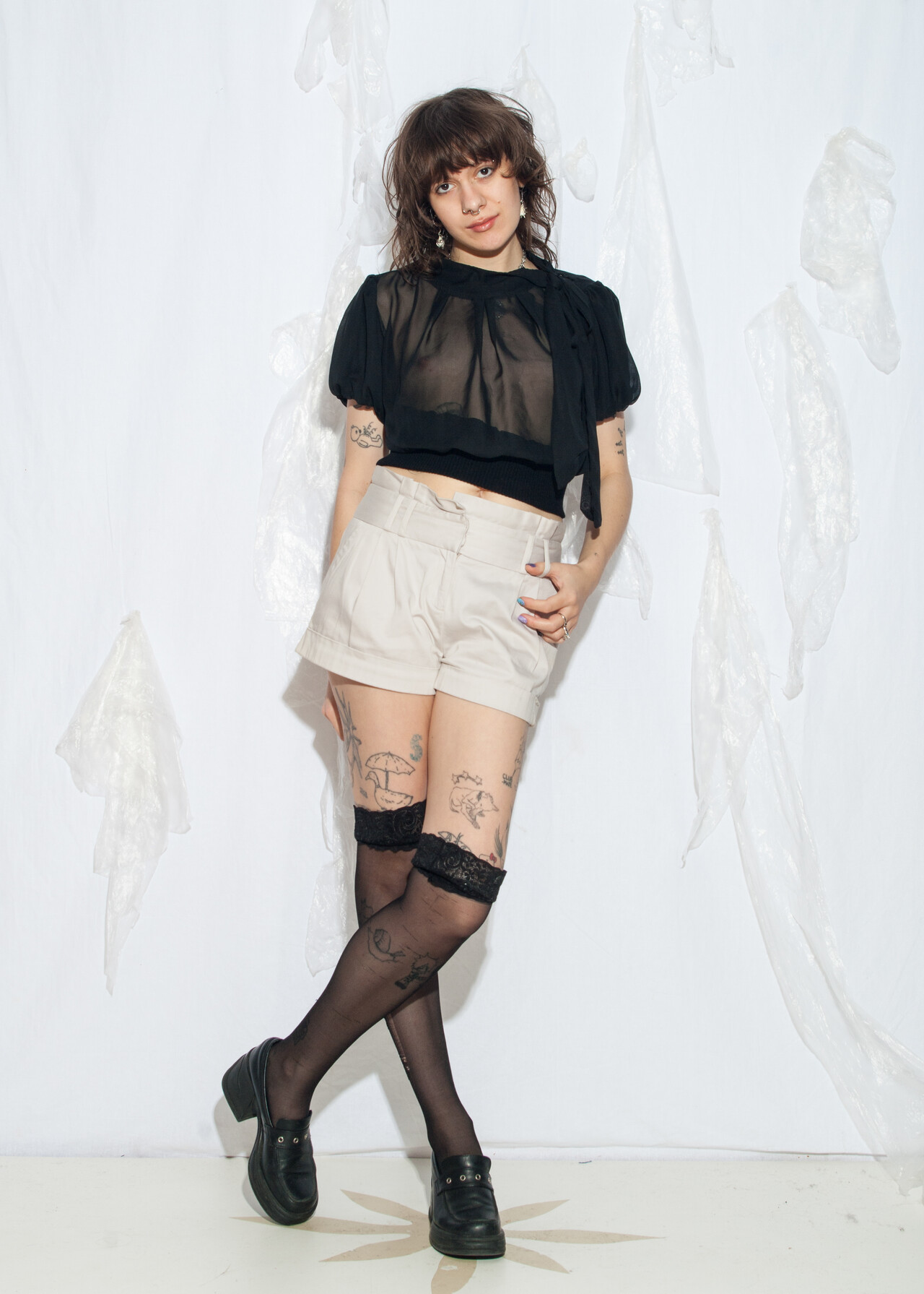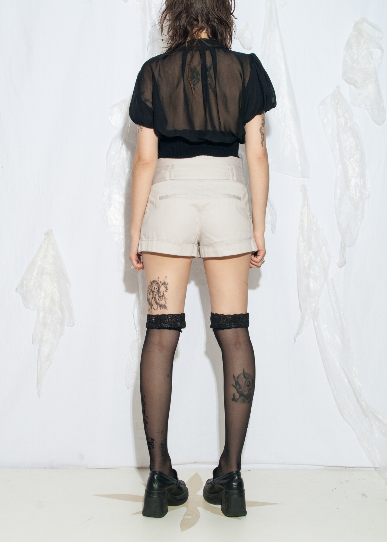 Tags: beige hot pants, cotton micro shorts, middle rise waist, y2k indie sleaze