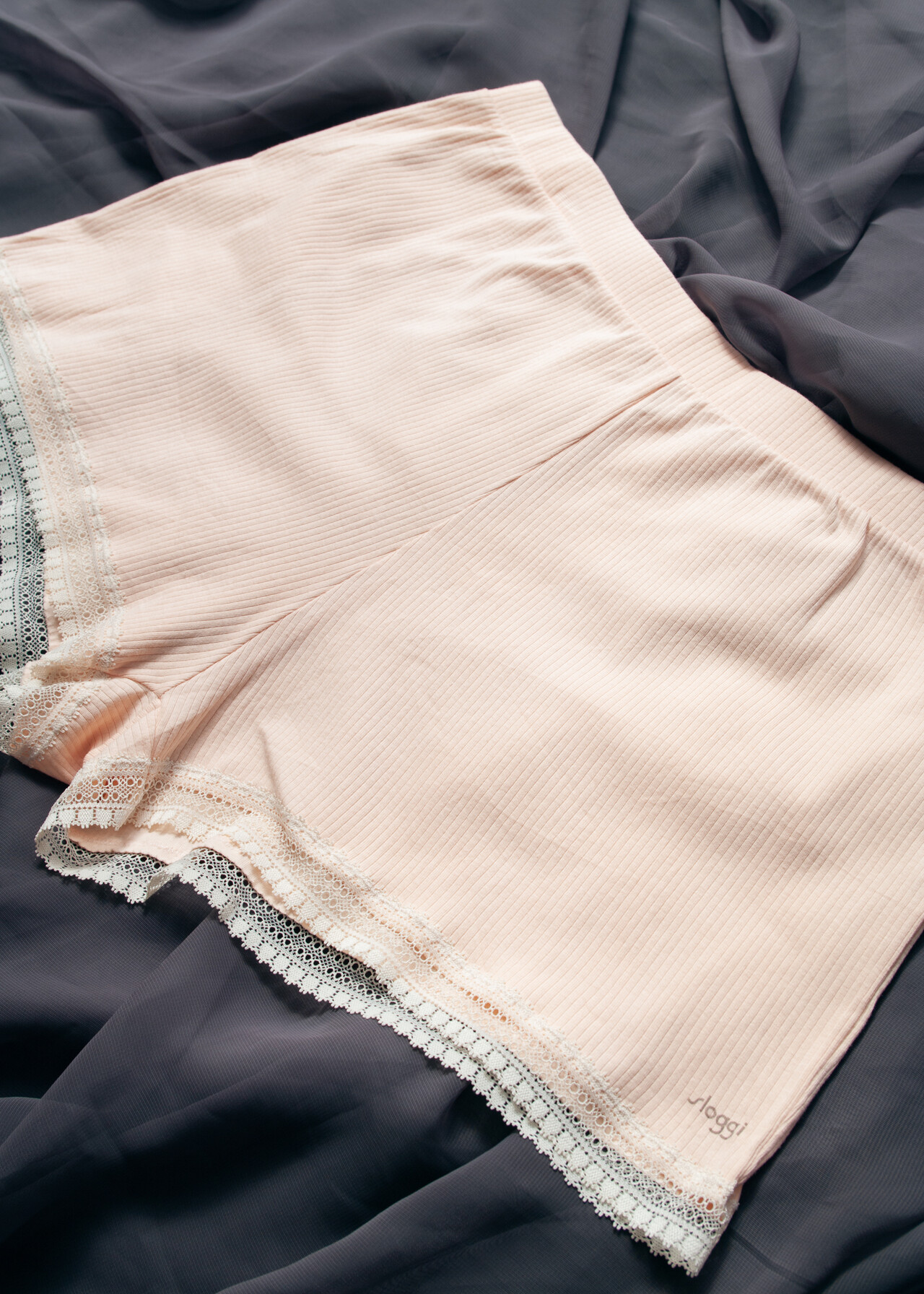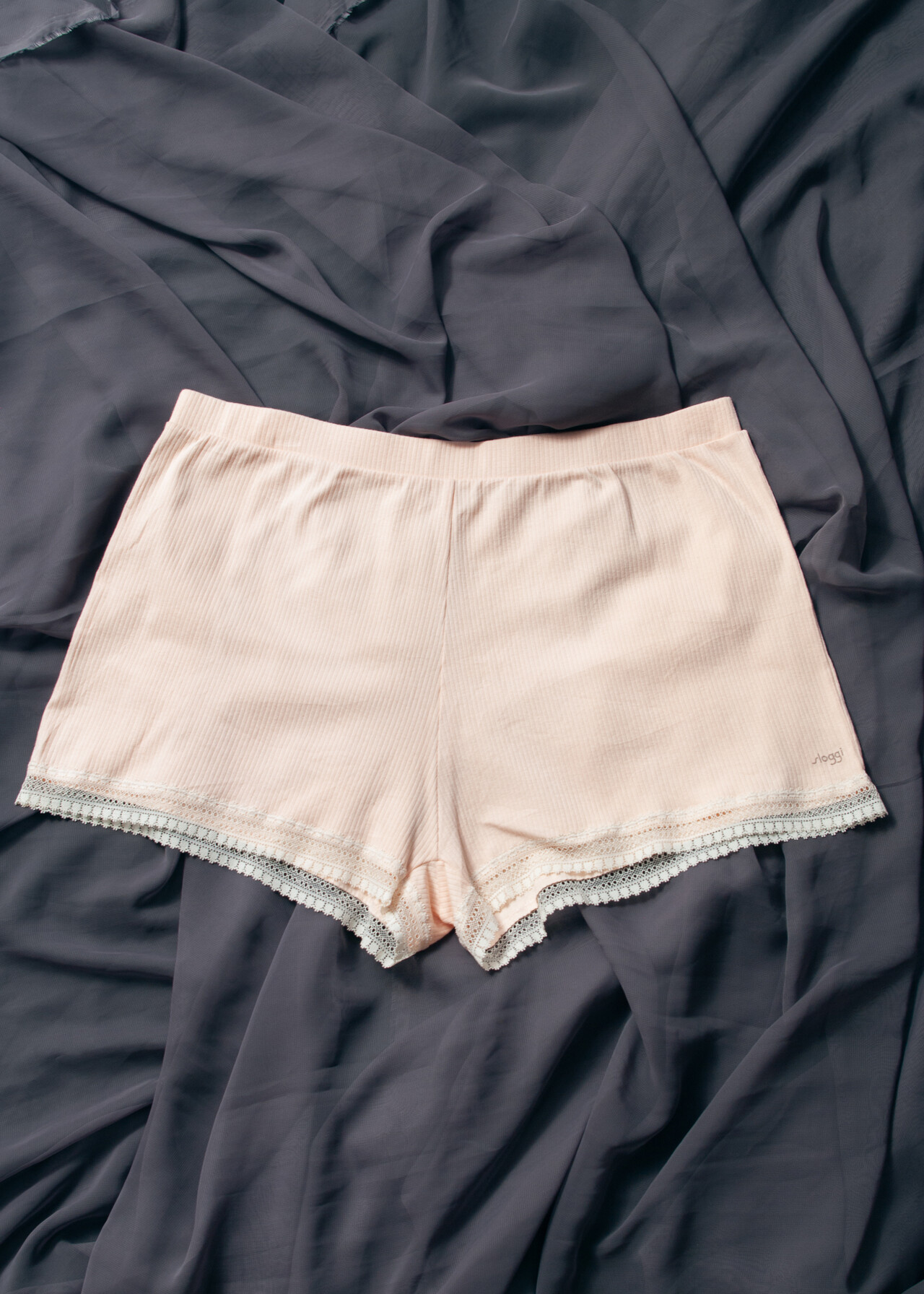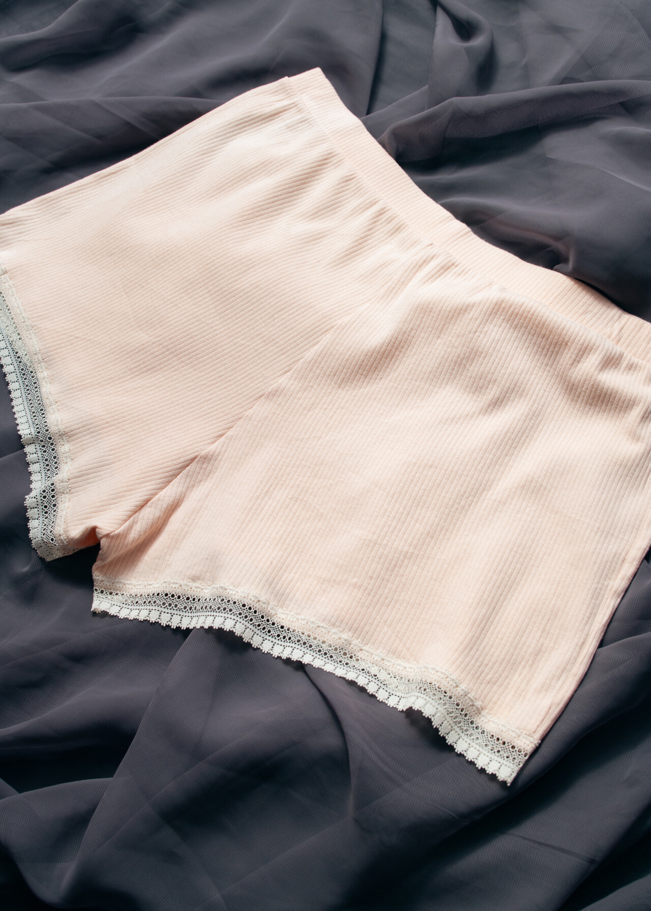 Tags: 2000s style clothing, bloomer shorts, lace hem hot pants, natural fabric, pajamas pants, pastel pink, romantic coquette, Sloggi, y2k vintage fashion