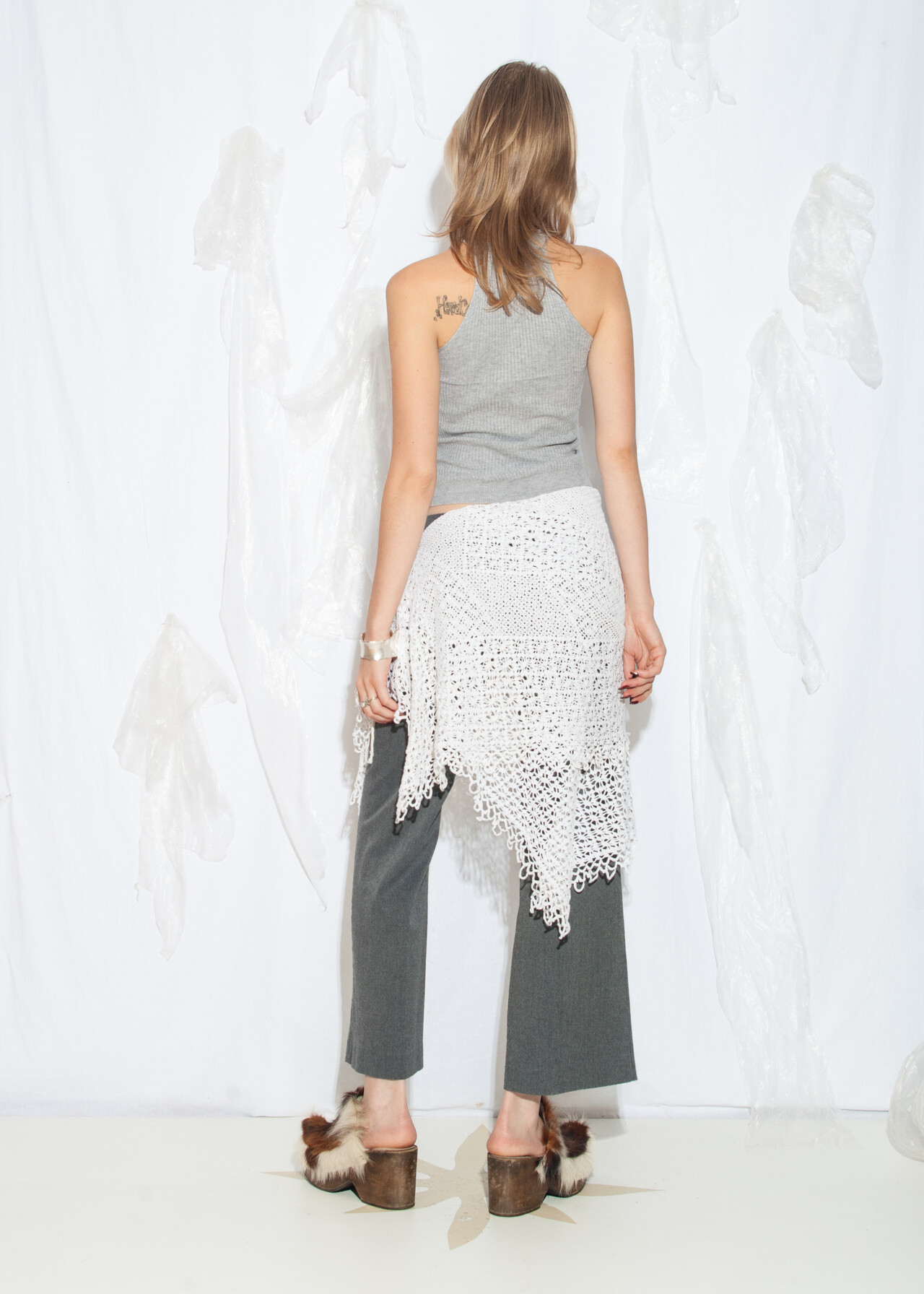 Tags: 60s vintage fashion, crochet lace skirt, doily skirt, frilly skirt, handmade crocheted, layer skirt, natural white cotton, reworked, romantic coquette, upcycled tablecloth, whimsi twee look, wrap skirt
