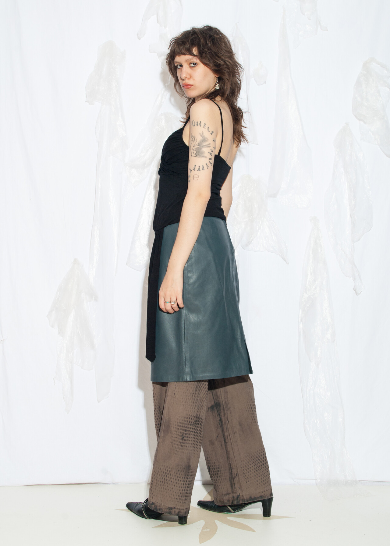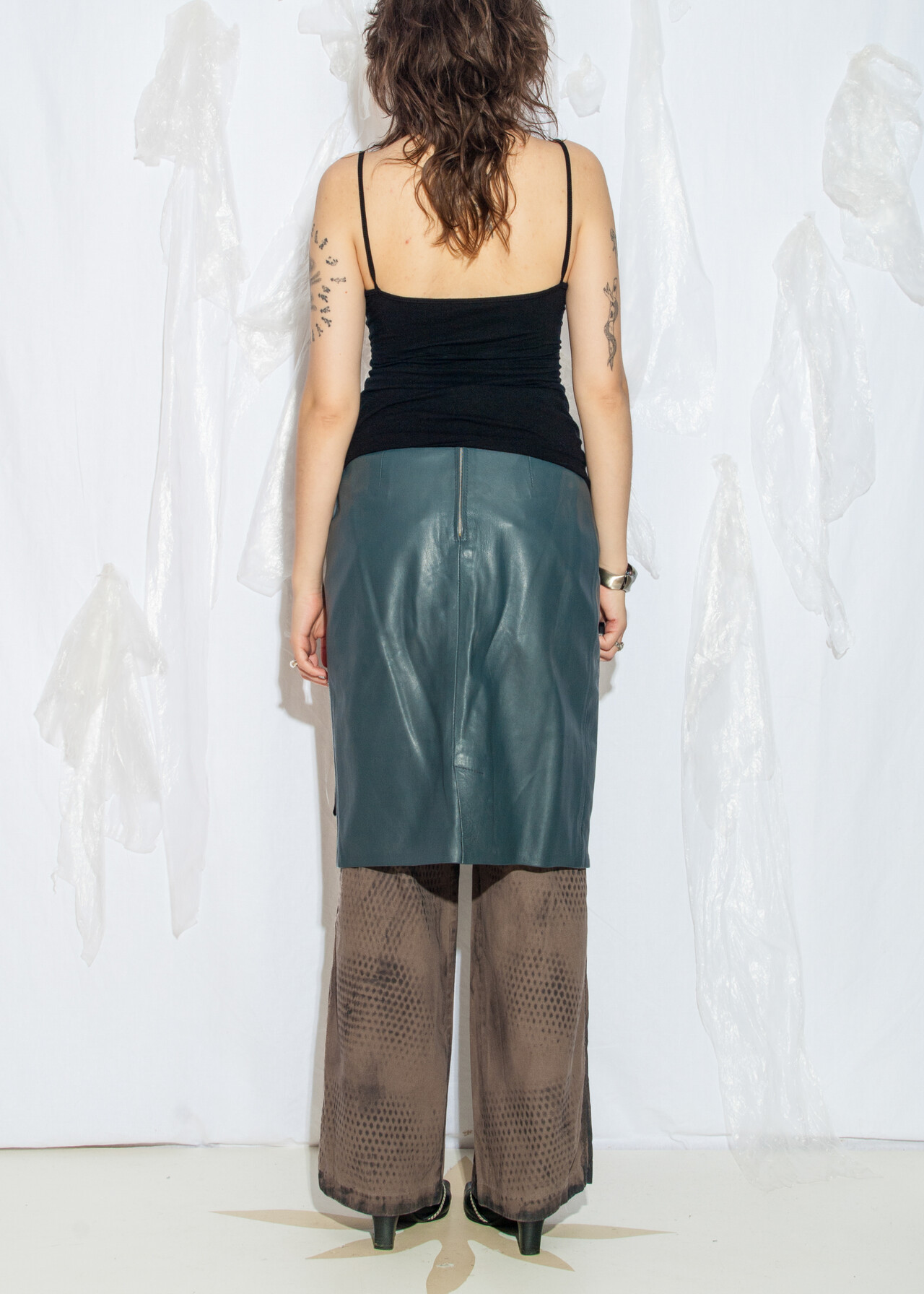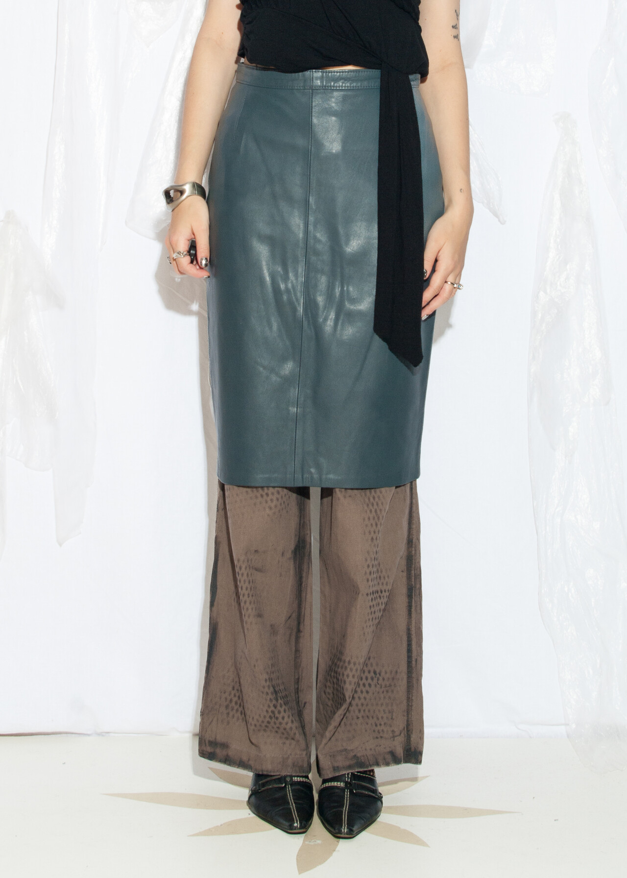 80s vintage real leather skirt – the office siren look that proves grey can be anything but bland.