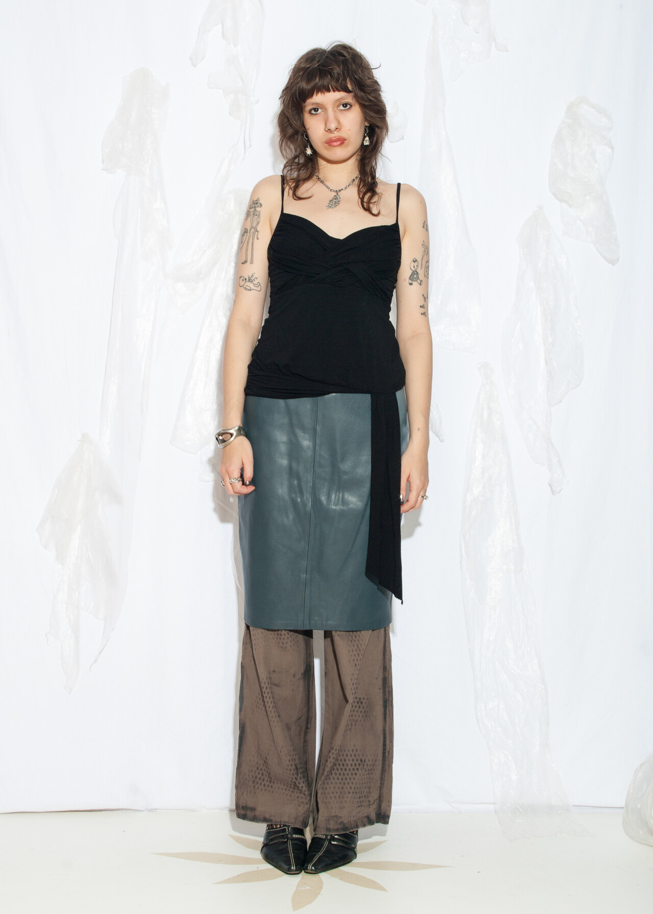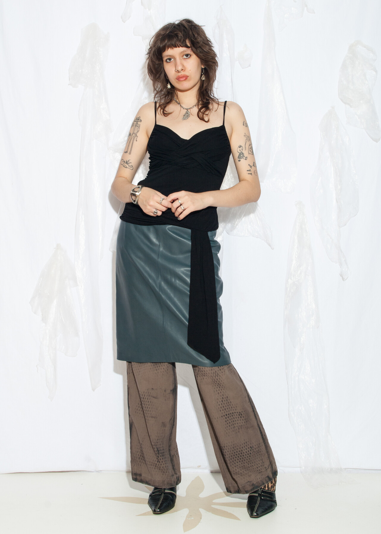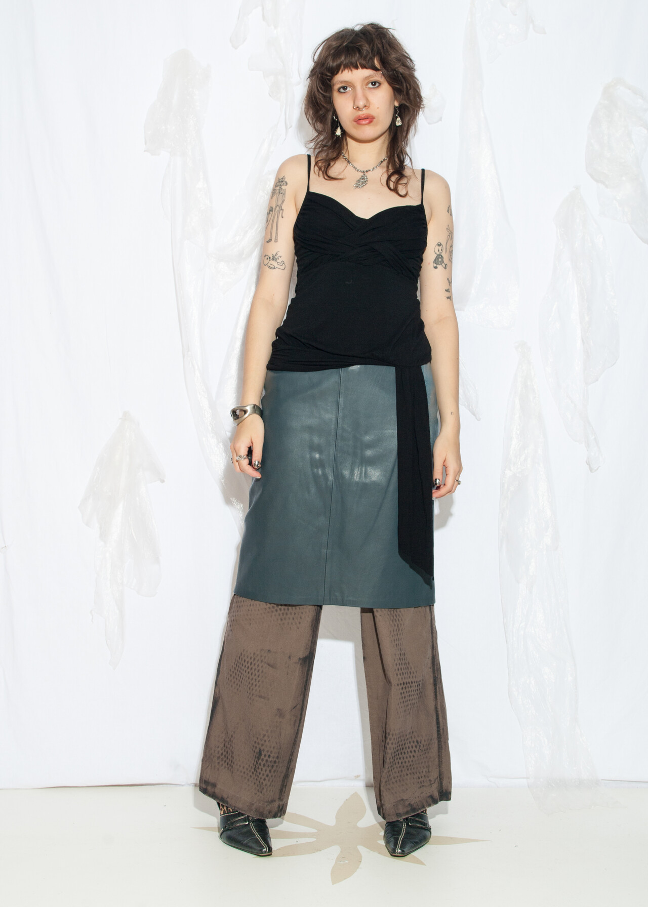 80s vintage real leather skirt – the office siren look that proves grey can be anything but bland.