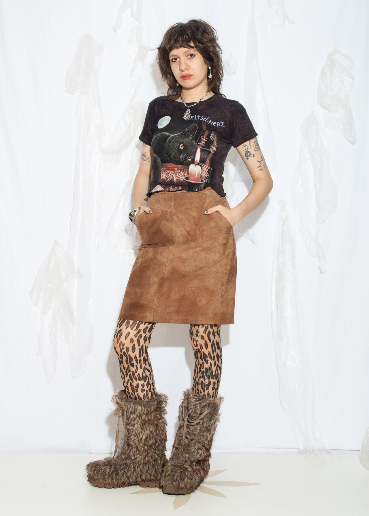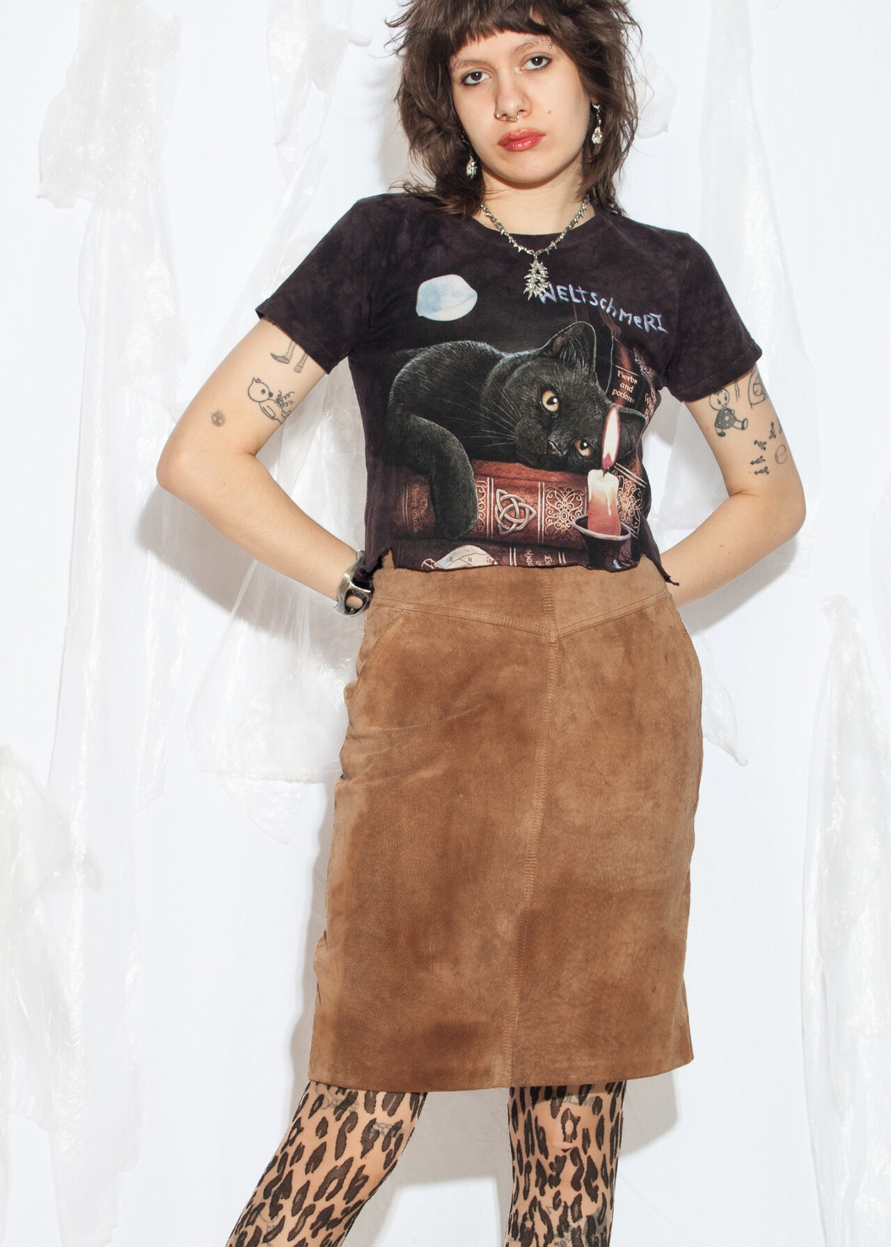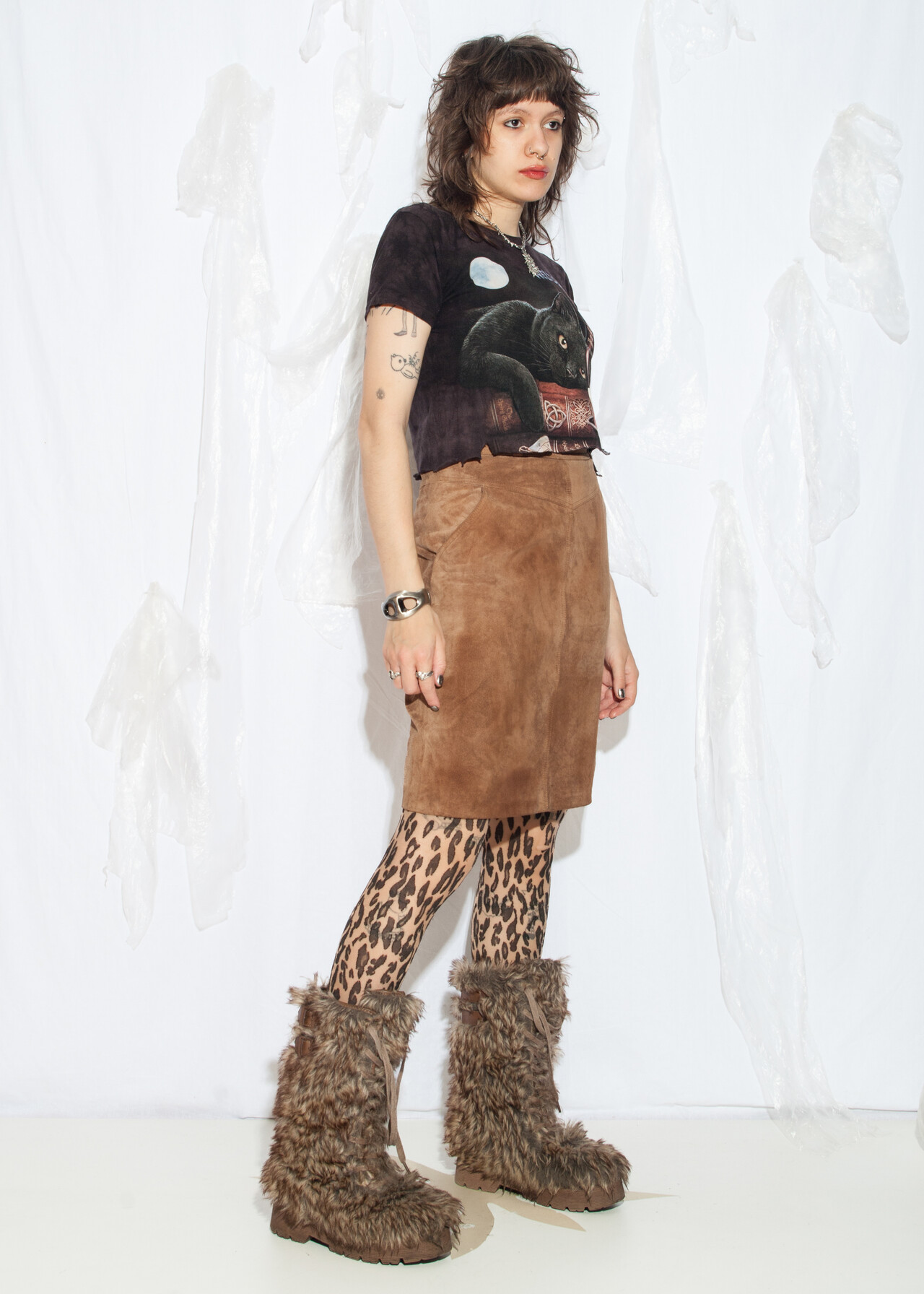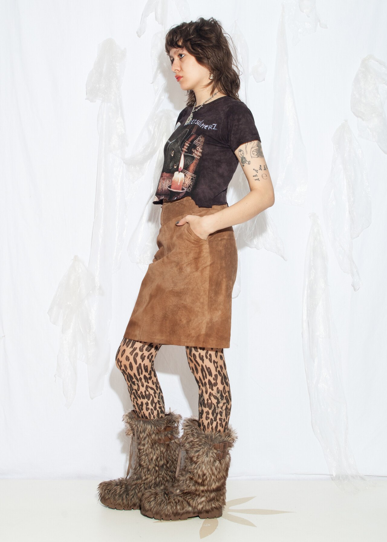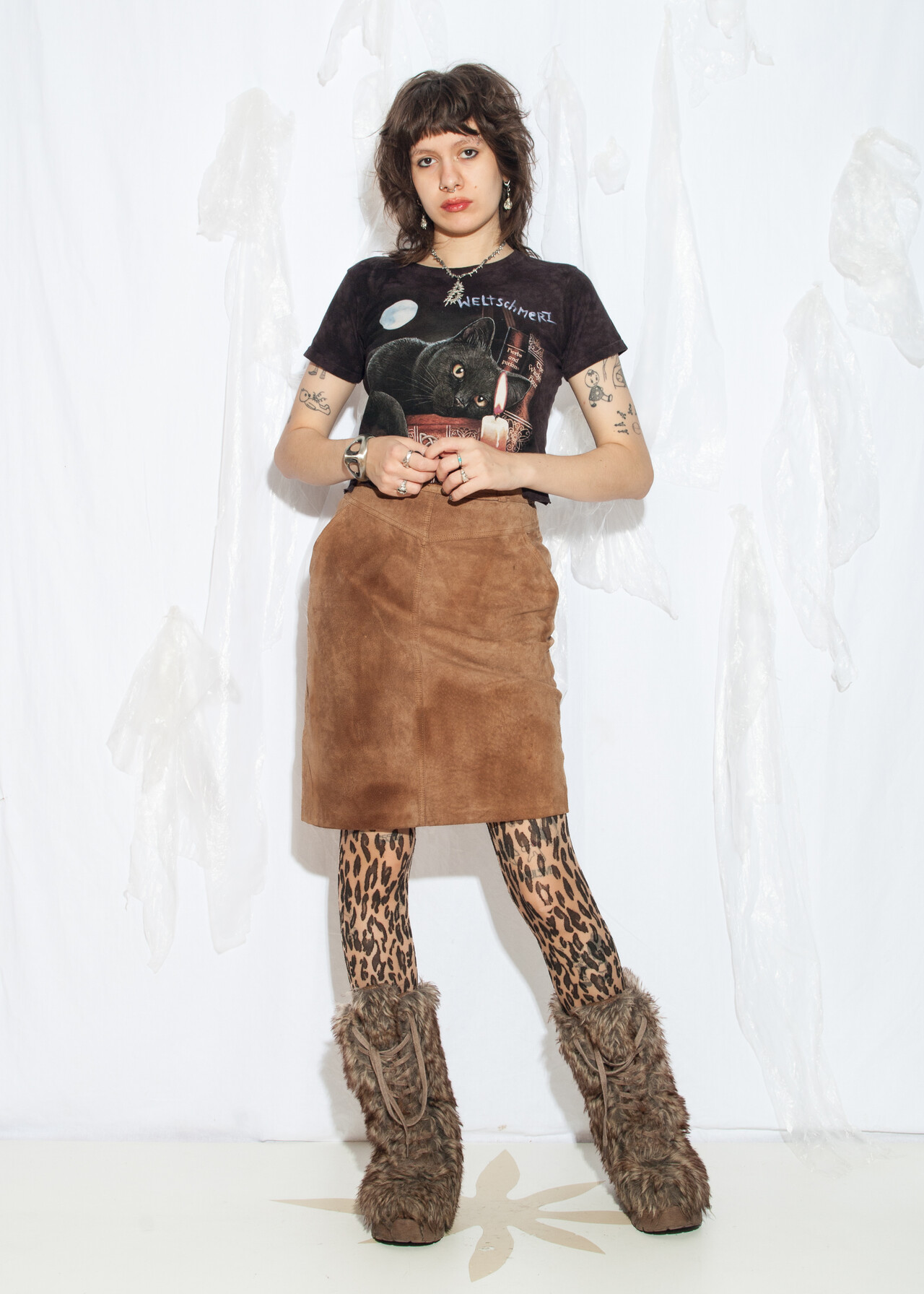 Tags: 80s vintage fashion, brown suede, European vintage, grunge outfit, high waisted bottom, knee length skirt, midi skirt, pencil skirt, real leather skirt