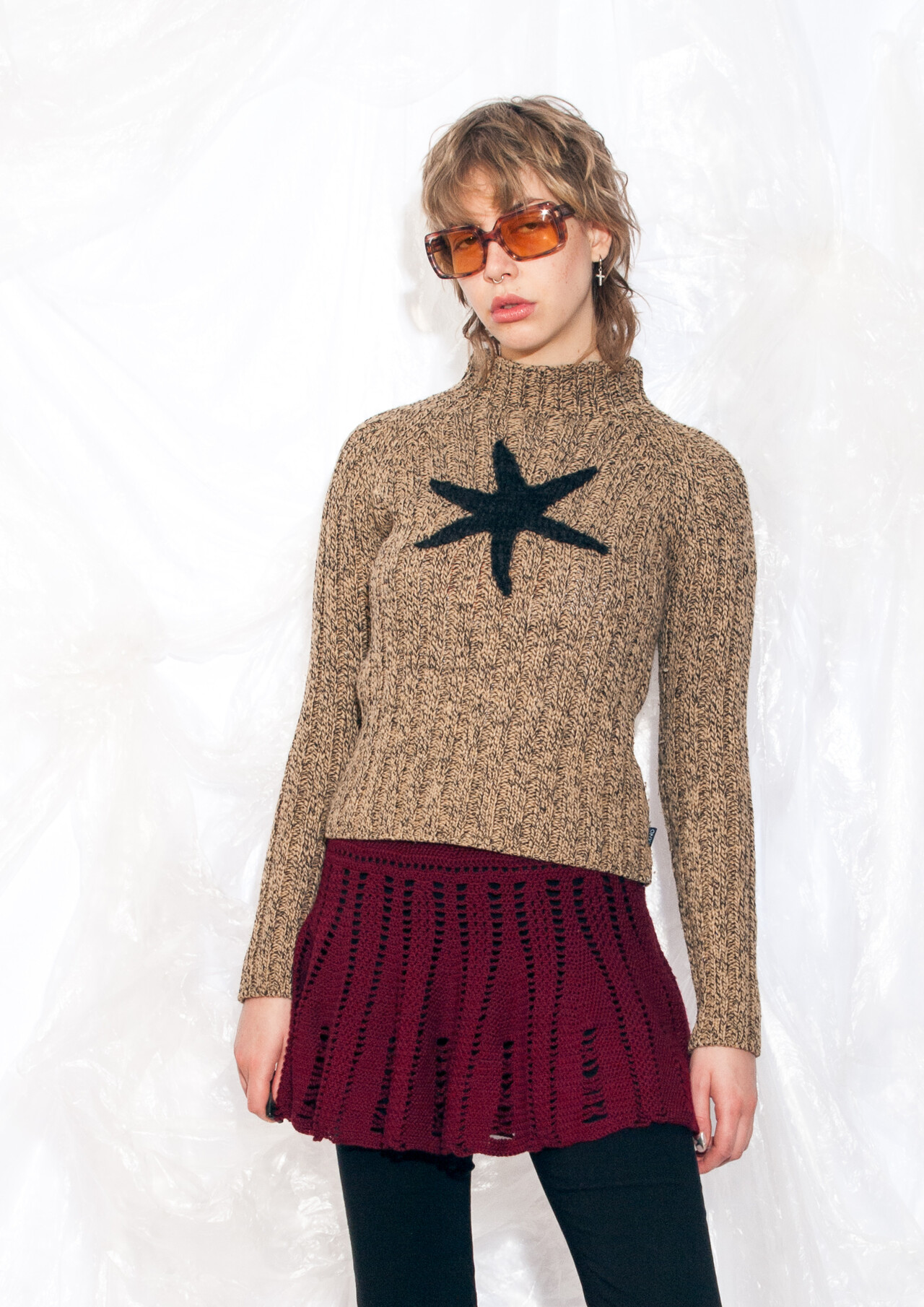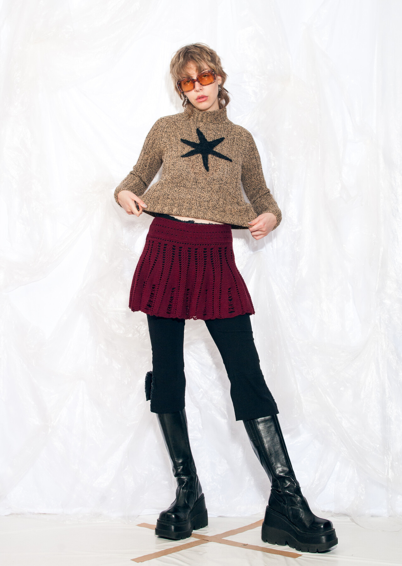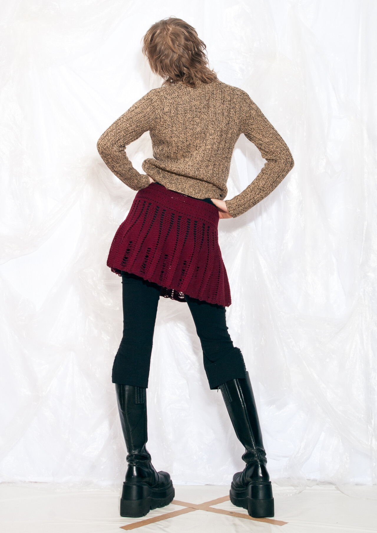 Step back to the iconic 90s with this handmade, crocheted maroon mini skirt! It’s like wearing a cheesy rom-com, but without the cringe-worthy plot. Now let’s bring back those high ponytails!