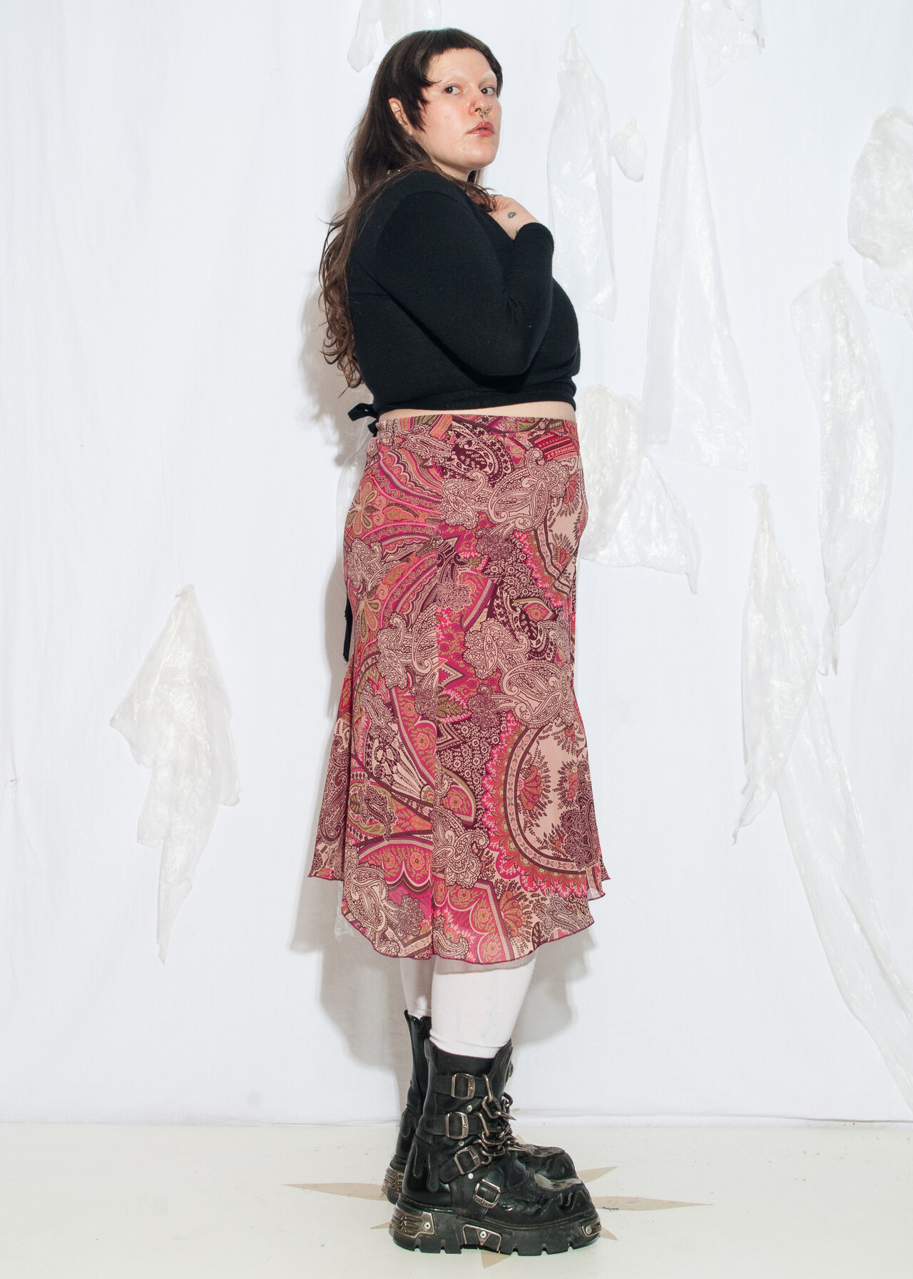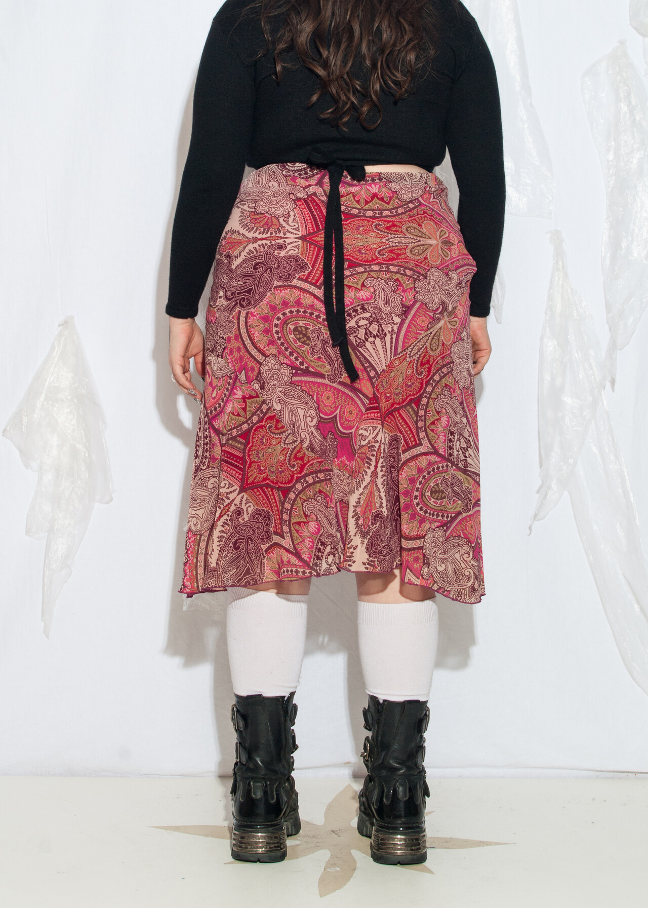Vintage Y2K Boho Midi Skirt in Pink Paisley