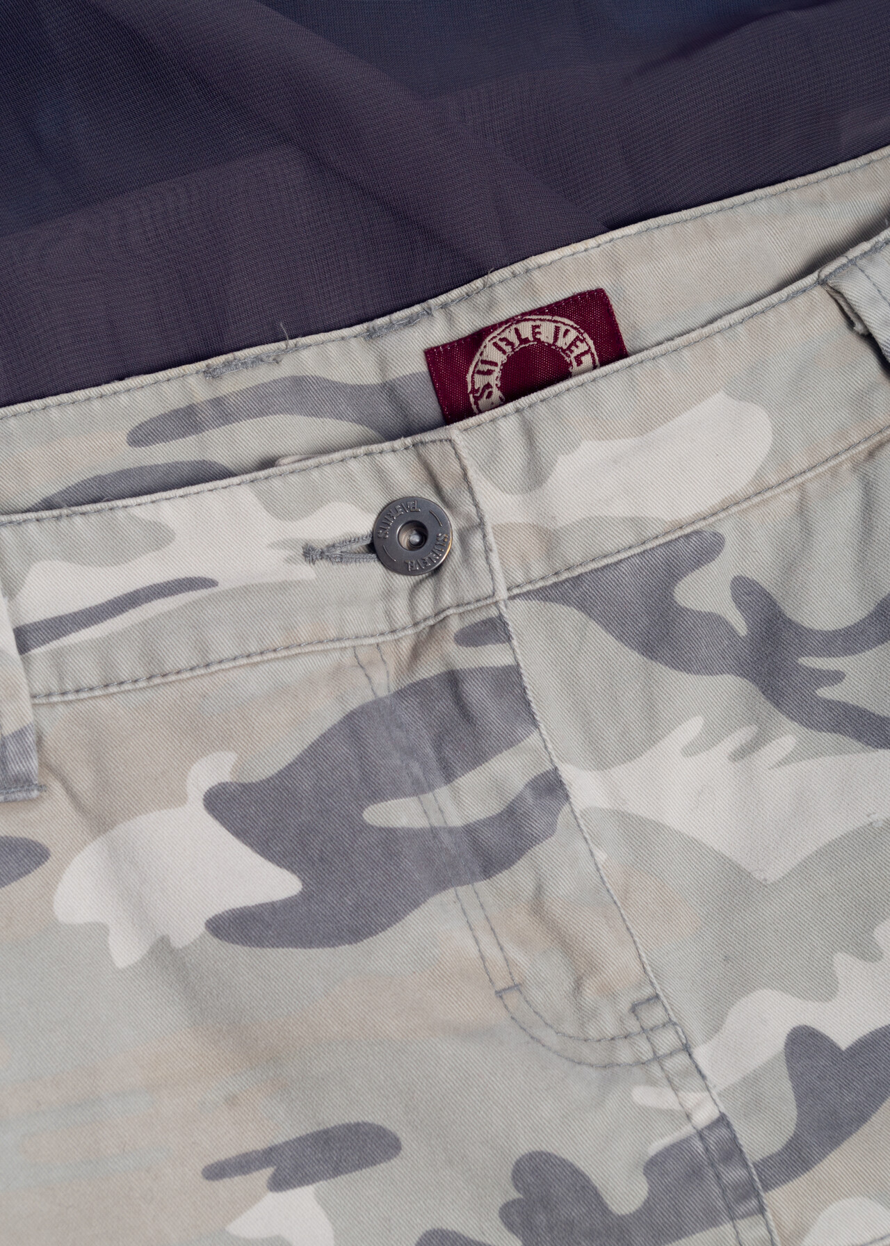 Tags: 00s streetwear look, 2000s style fashion, Avril punk look, camo pattern, frilly mini skirt, grunge outfit, middle rise waist, military vibe, y2k vintage clothing