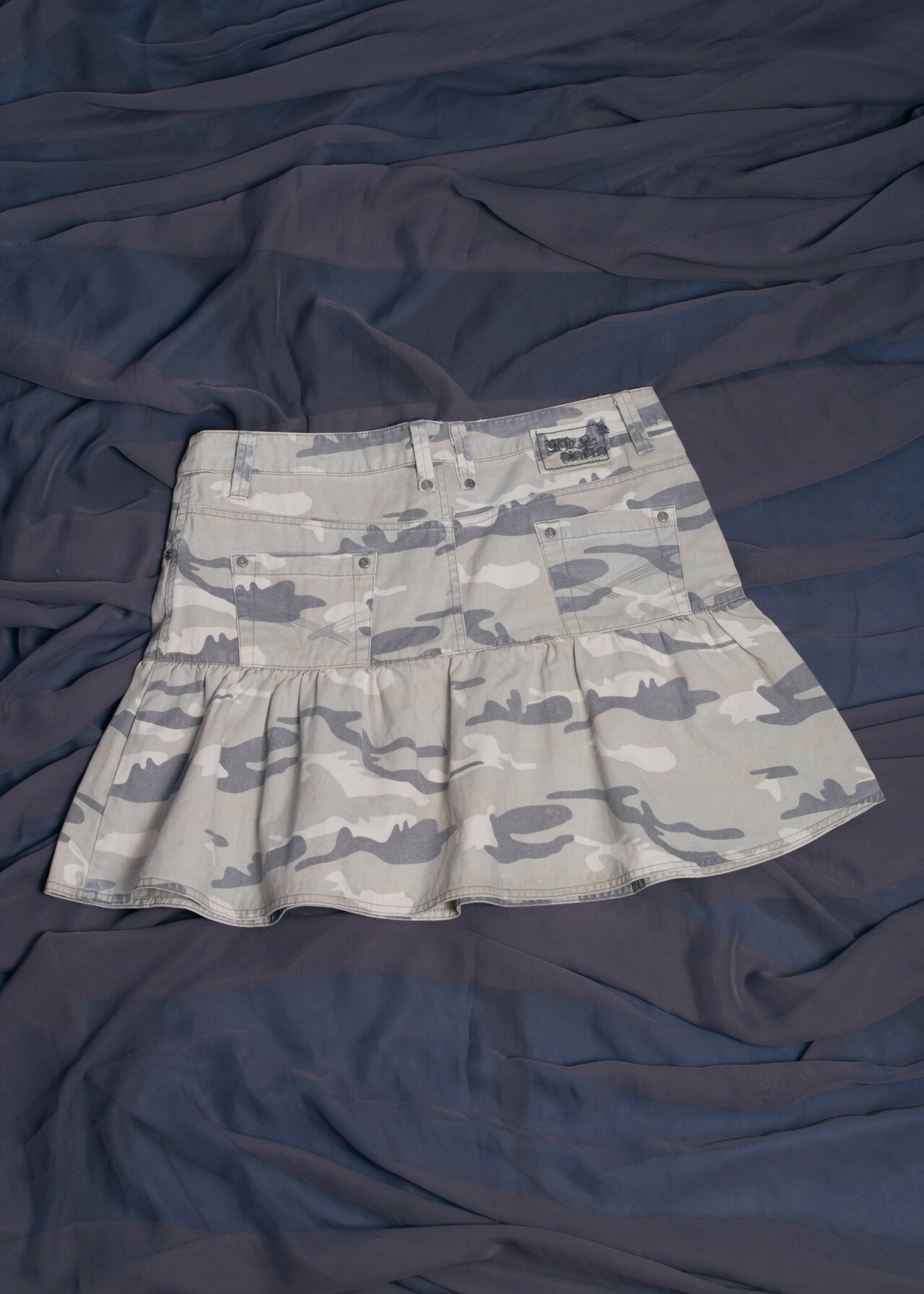 This Y2K vintage frilly mini skirt is serving major Avril punk vibes with its camo pattern – perfect for sneaking into early 2000s nostalgia.