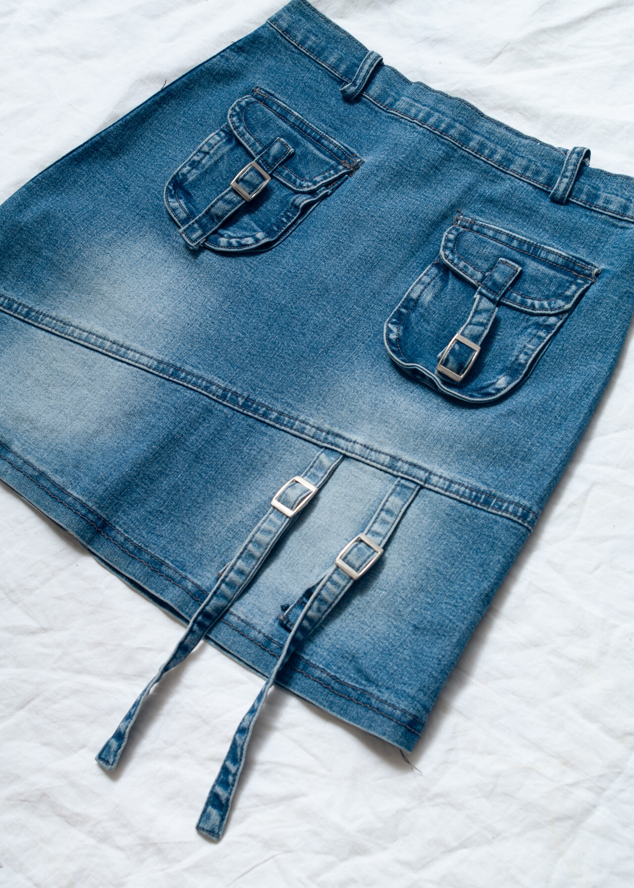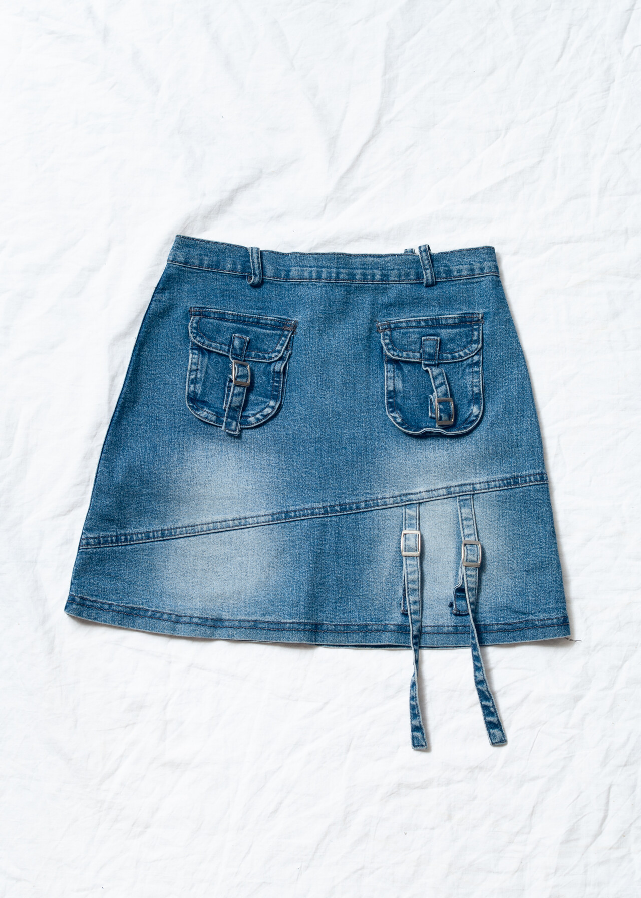 Tags: 2000s style clothing, cargo skirt, denim mini skirt, middle waist bottom, stonewashed jeans, techwear clothes, y2k grunge outfit, y2k vintage fashion