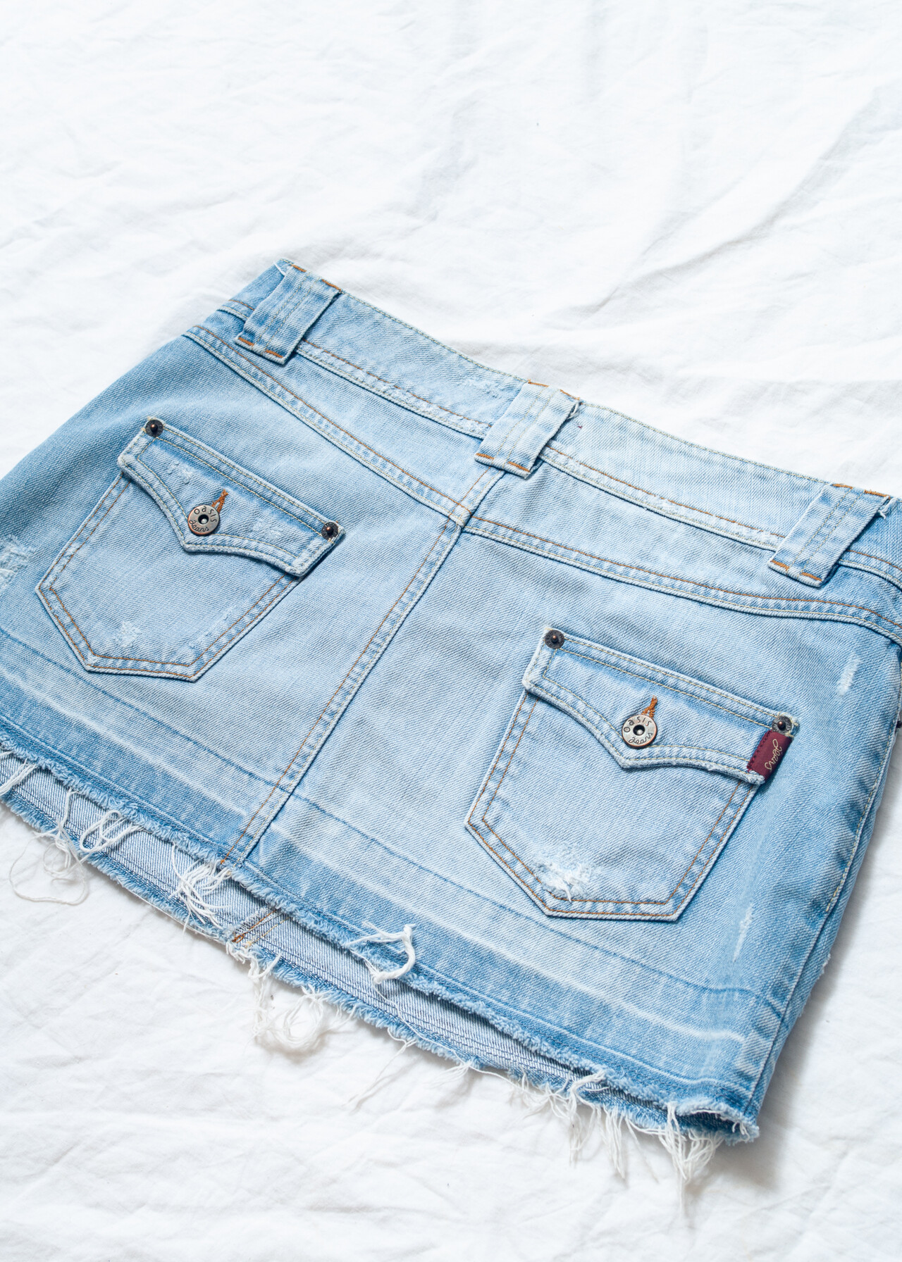 This Y2K vintage denim micro skirt is the cheeky wink to 2000s you didn’t know you needed.