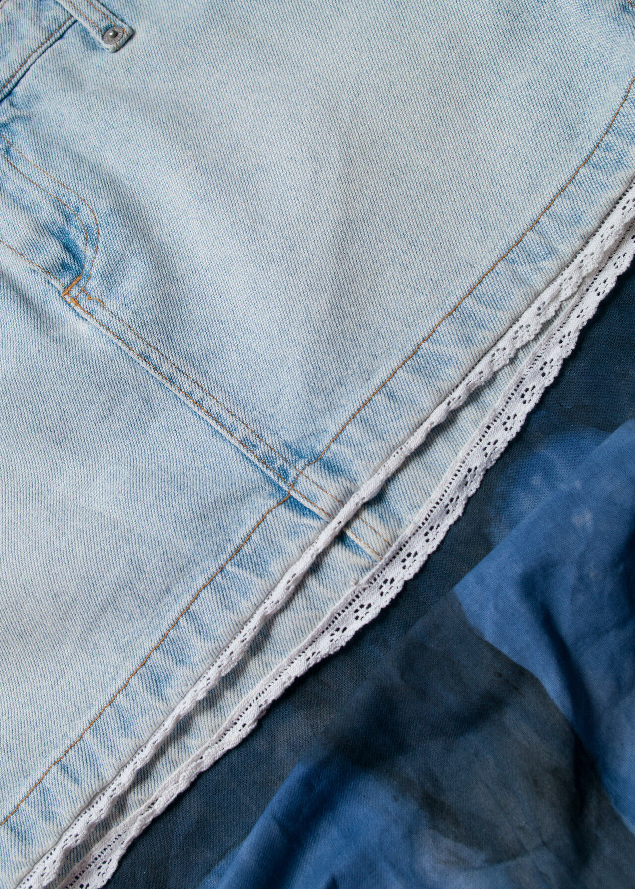 Tags: 2000s style clothing, denim micro skirt, lace hem mini, low rise jeans, y2k vintage fashion