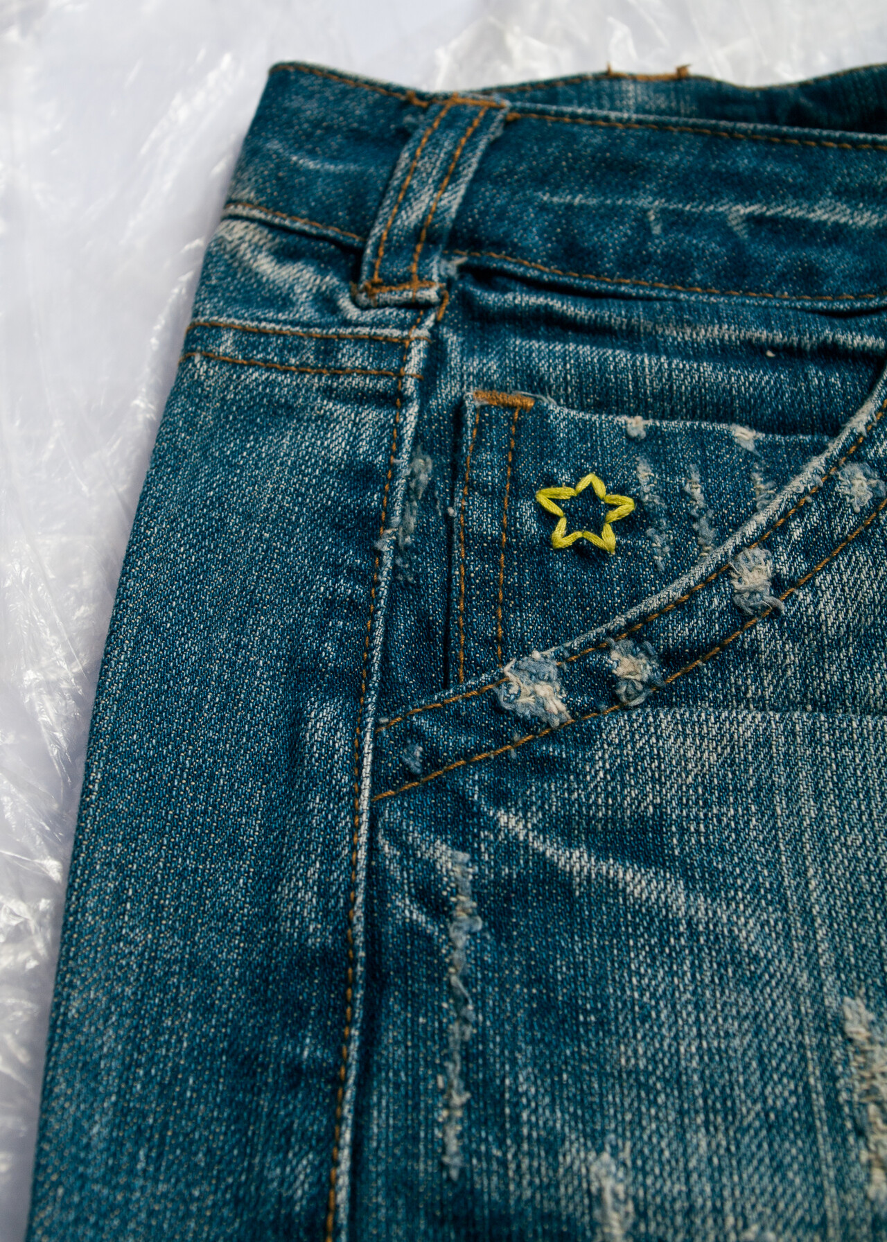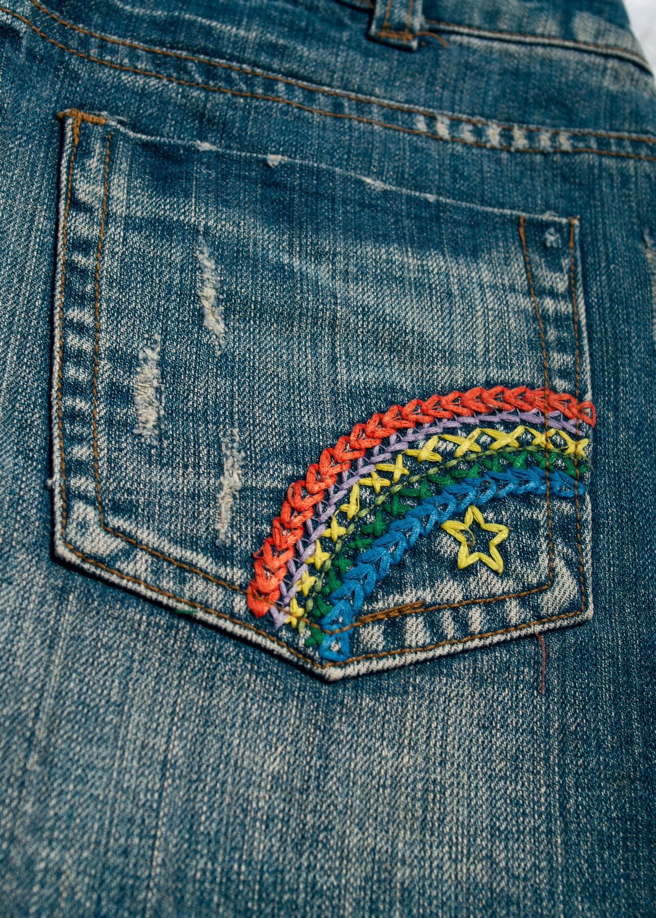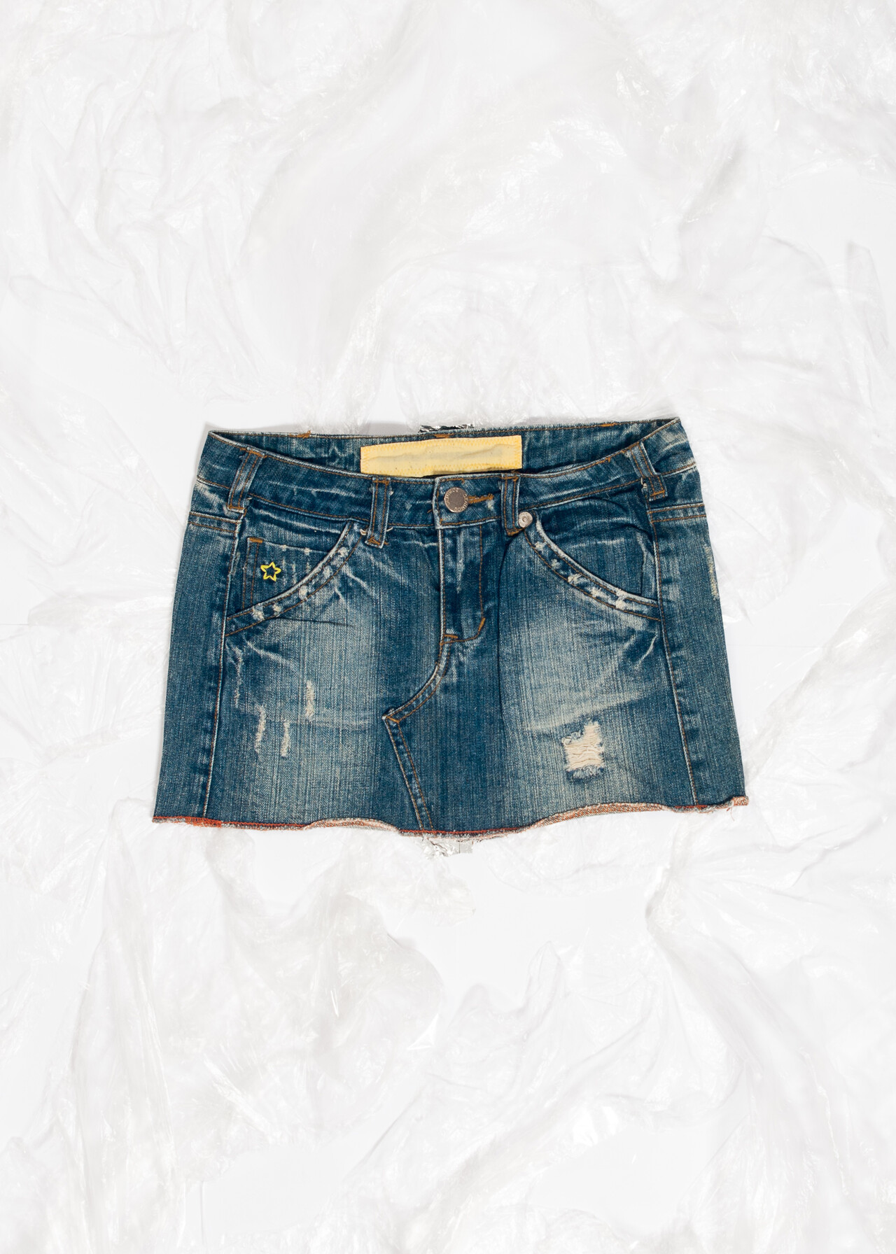 Tags: 2000s vintage style, denim micro skirt, low rise bottom, rainbow embroidery