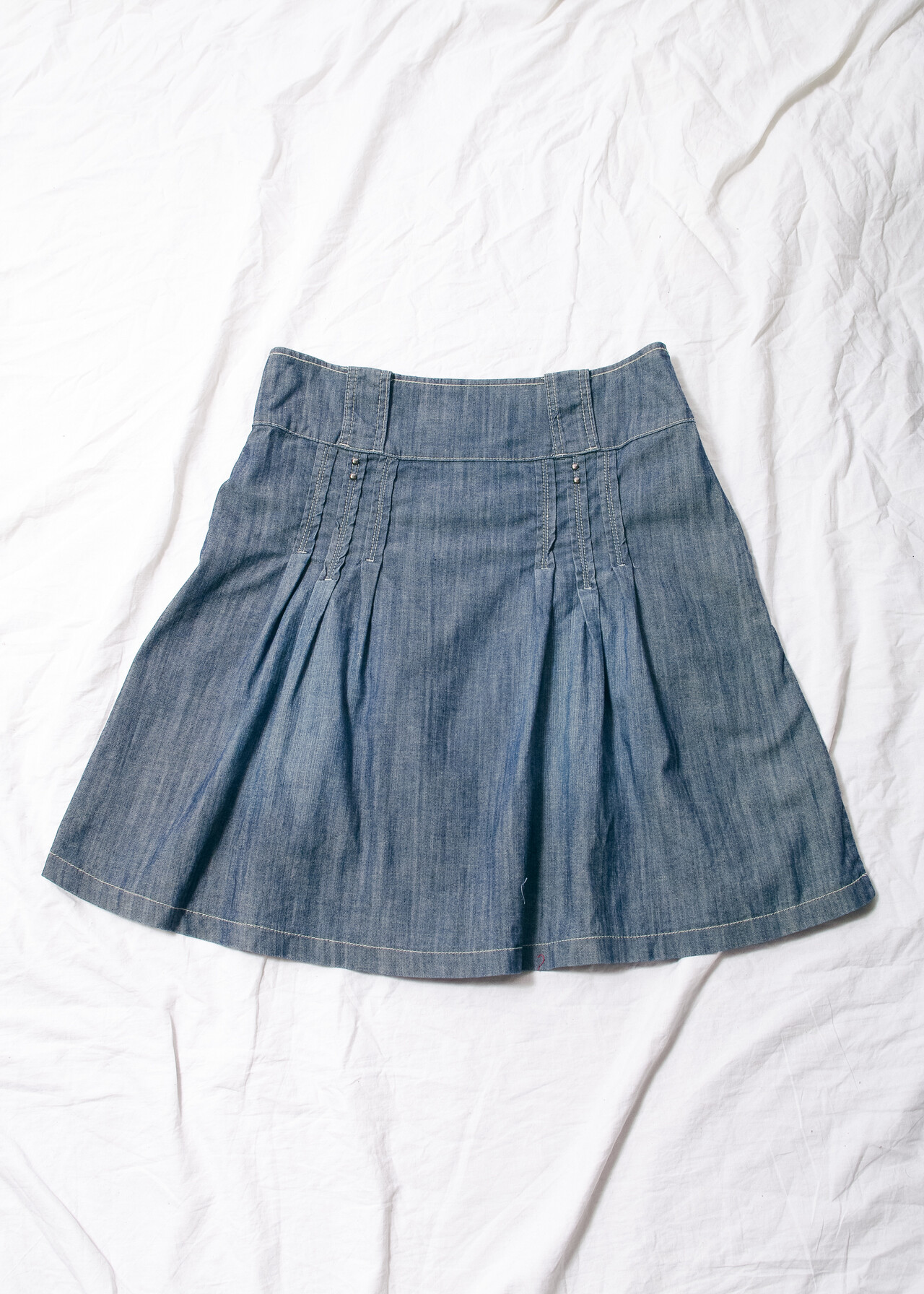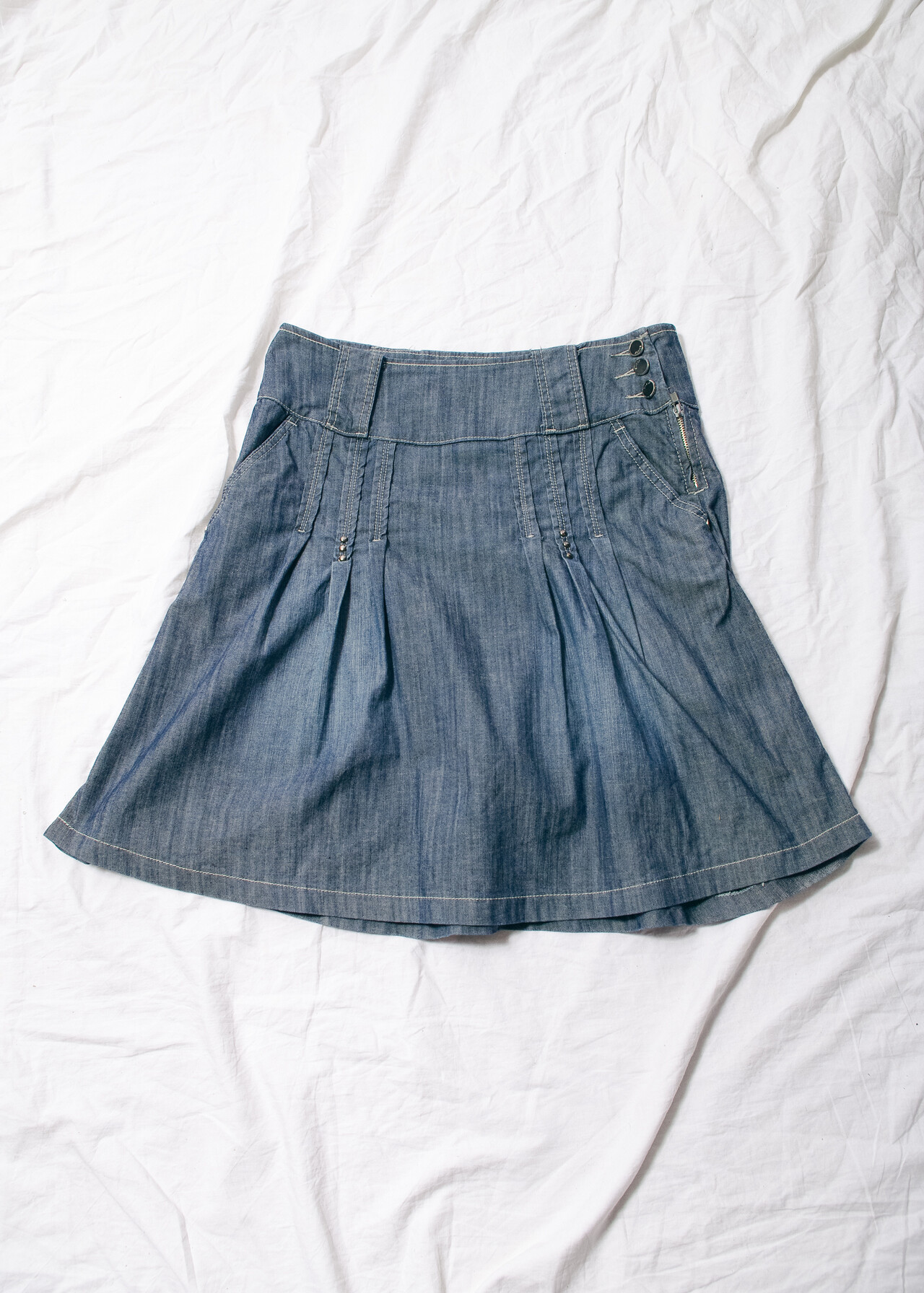 Vintage denim skirt 80s reworked cropped grunge skirt