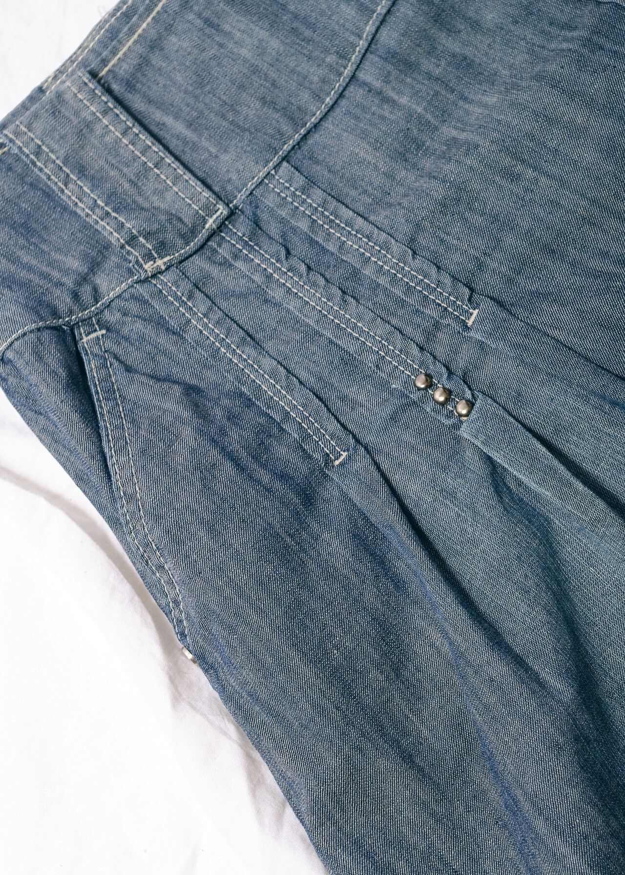 This Y2K vintage denim midi skirt is the frilly blue wonder that’ll have you strutting like an office siren straight out of the early 2000s!