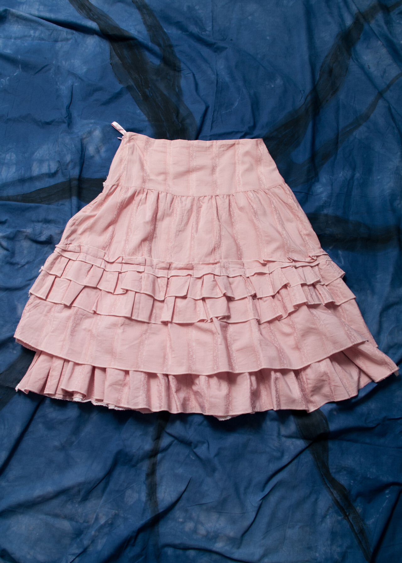 Tags: 2000s style clothing, coquette, frilly pink skirt, low rise midi skirt, mori kei, y2k vintage fashion