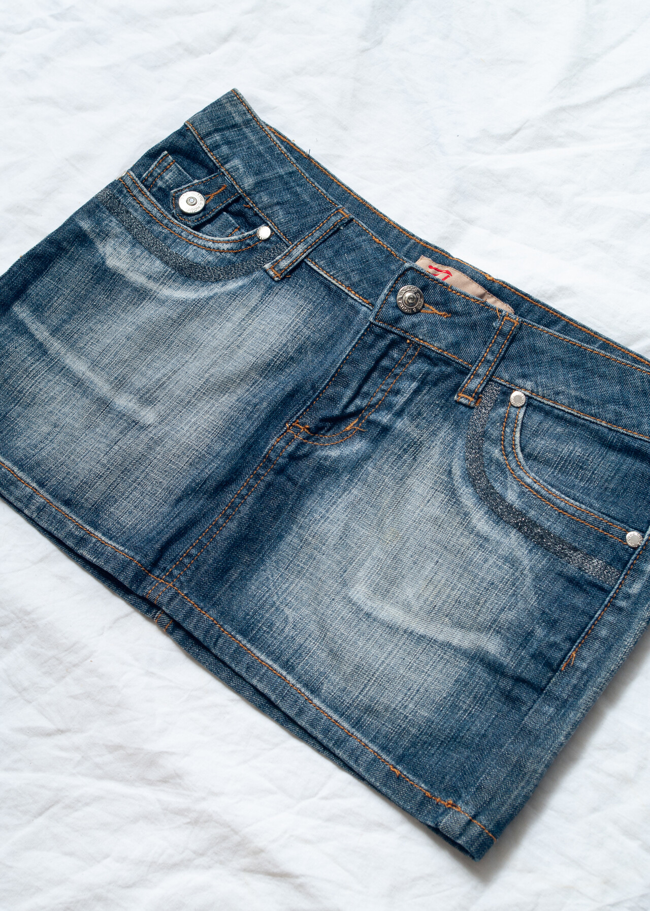 Y2K vintage denim micro skirt – the stonewashed mini that’ll have you channeling your inner early 2000s pop star without missing a beat.