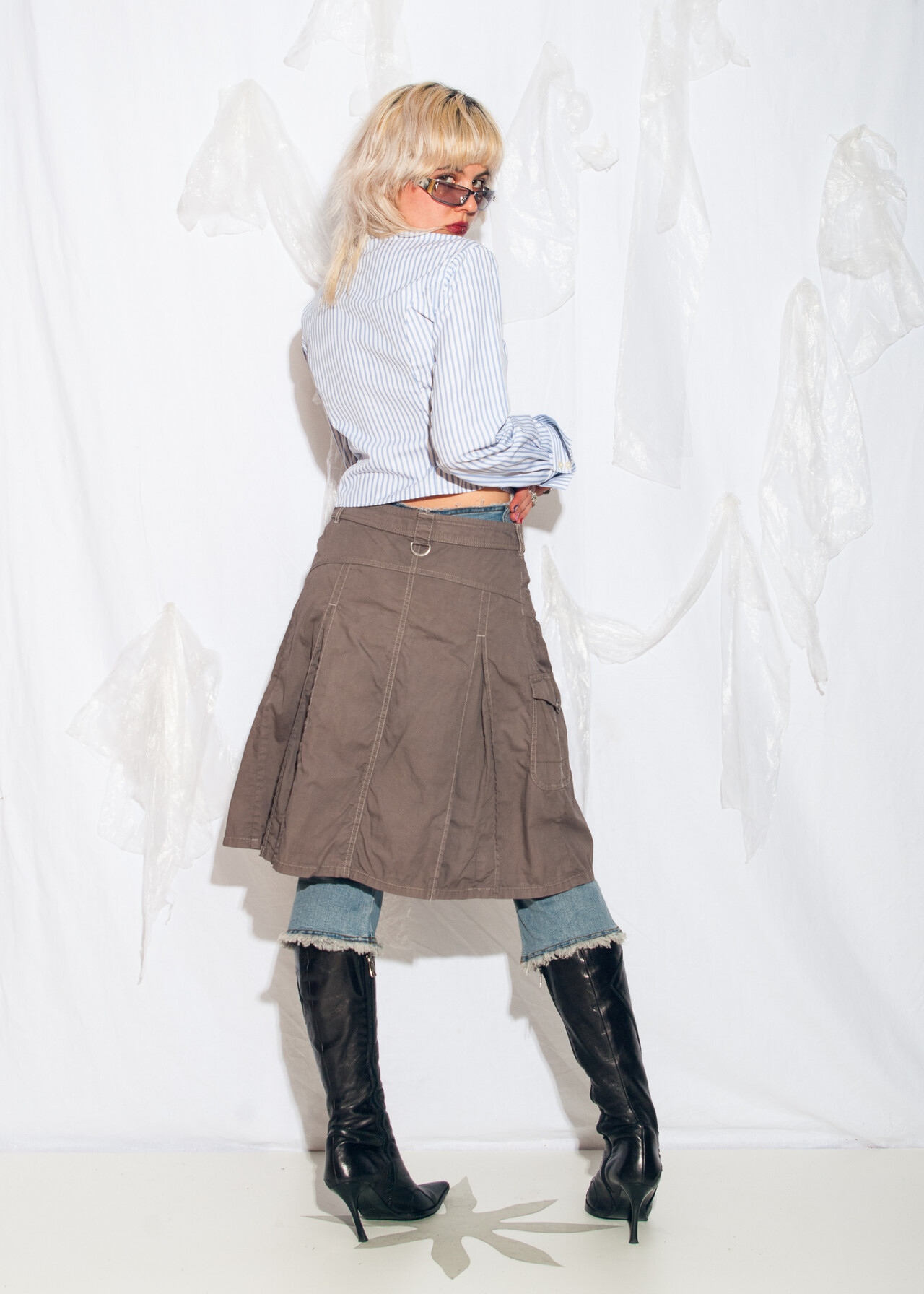 Vintage Y2K Grunge Cargo Midi Skirt in Grey