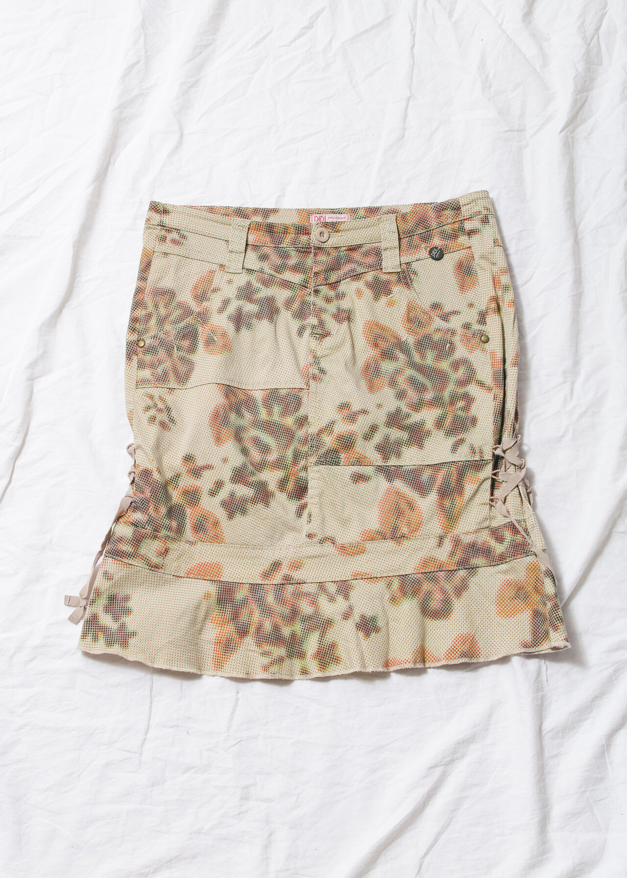 Vintage Y2K Lace-Up Midi Skirt in Beige by DIDI