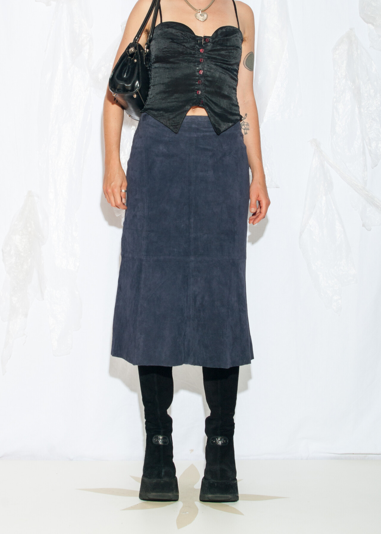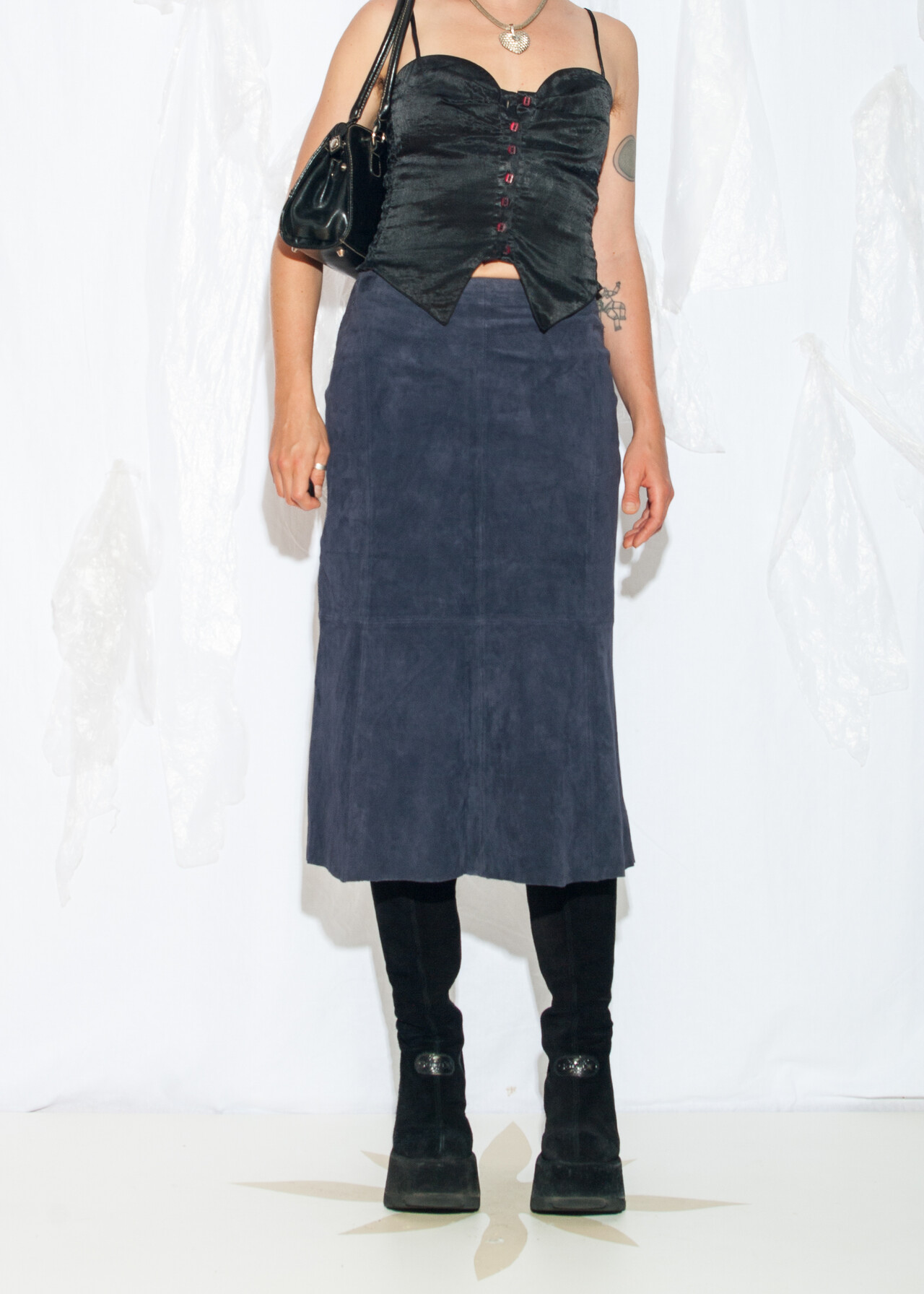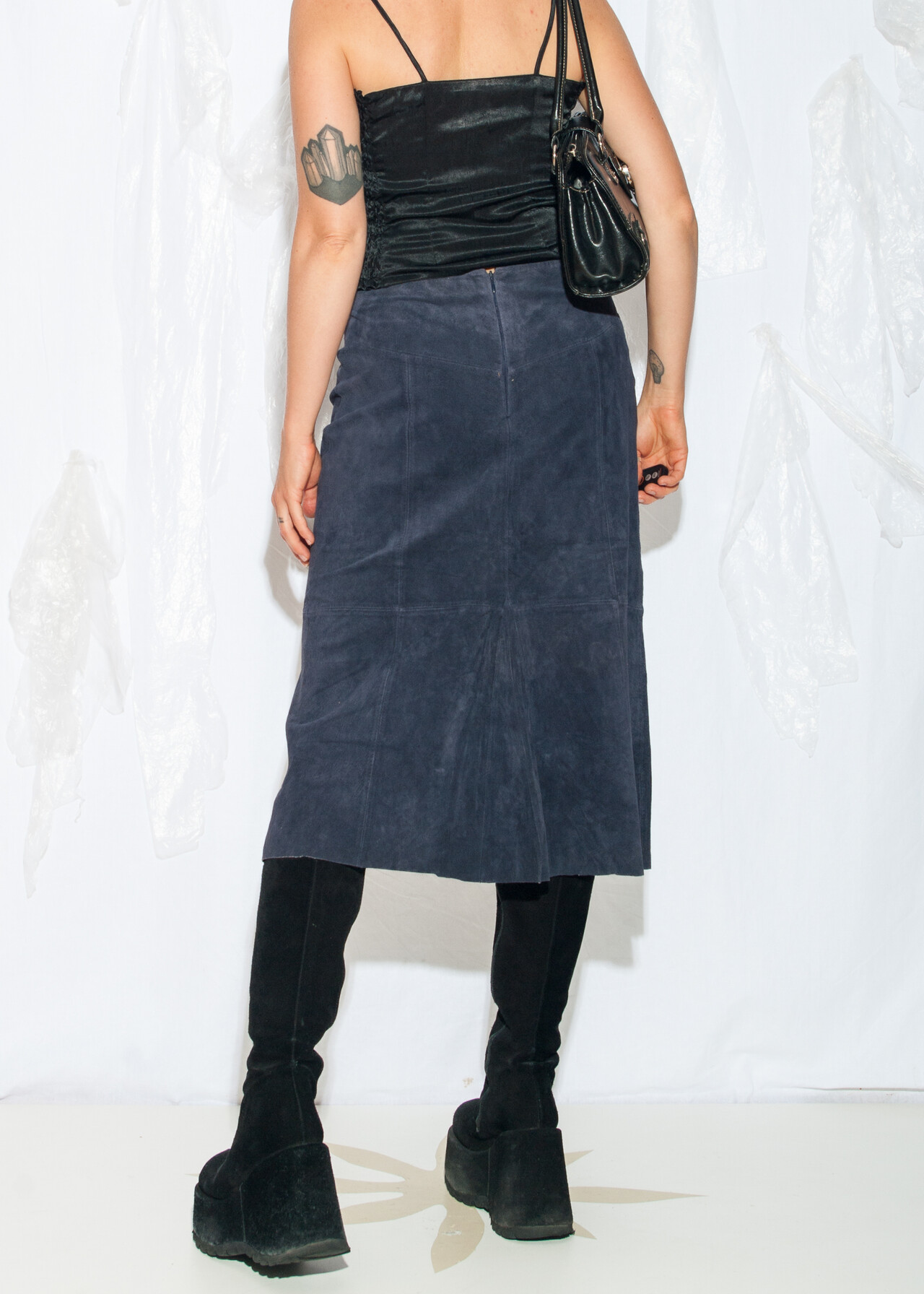 Tags: 2000s style clothing, middle rise waist, midi skirt, minimalist, real leather skirt, suede bottom, y2k vintage fashion