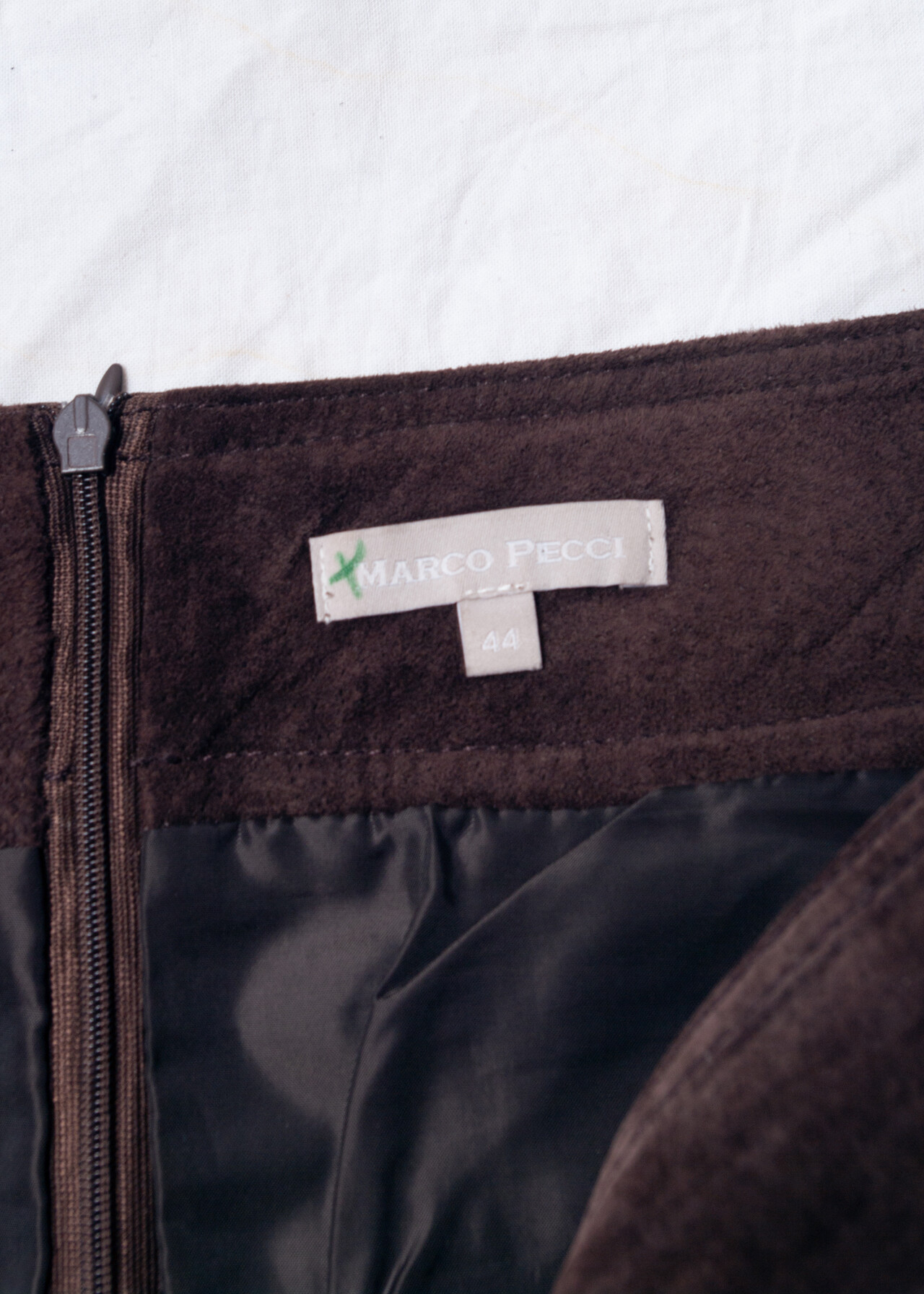 This Y2K vintage leather skirt by Marco Pecci is a real suede, brown mini masterpiece that’ll have you channeling your inner early 2000s diva.