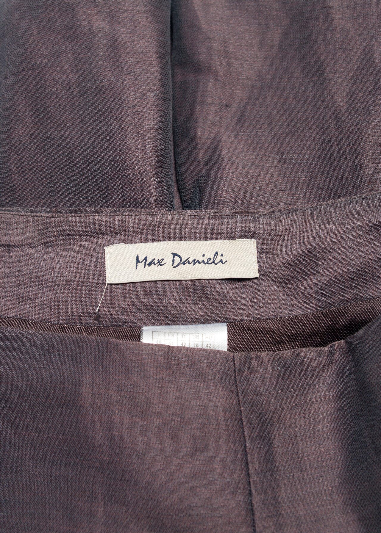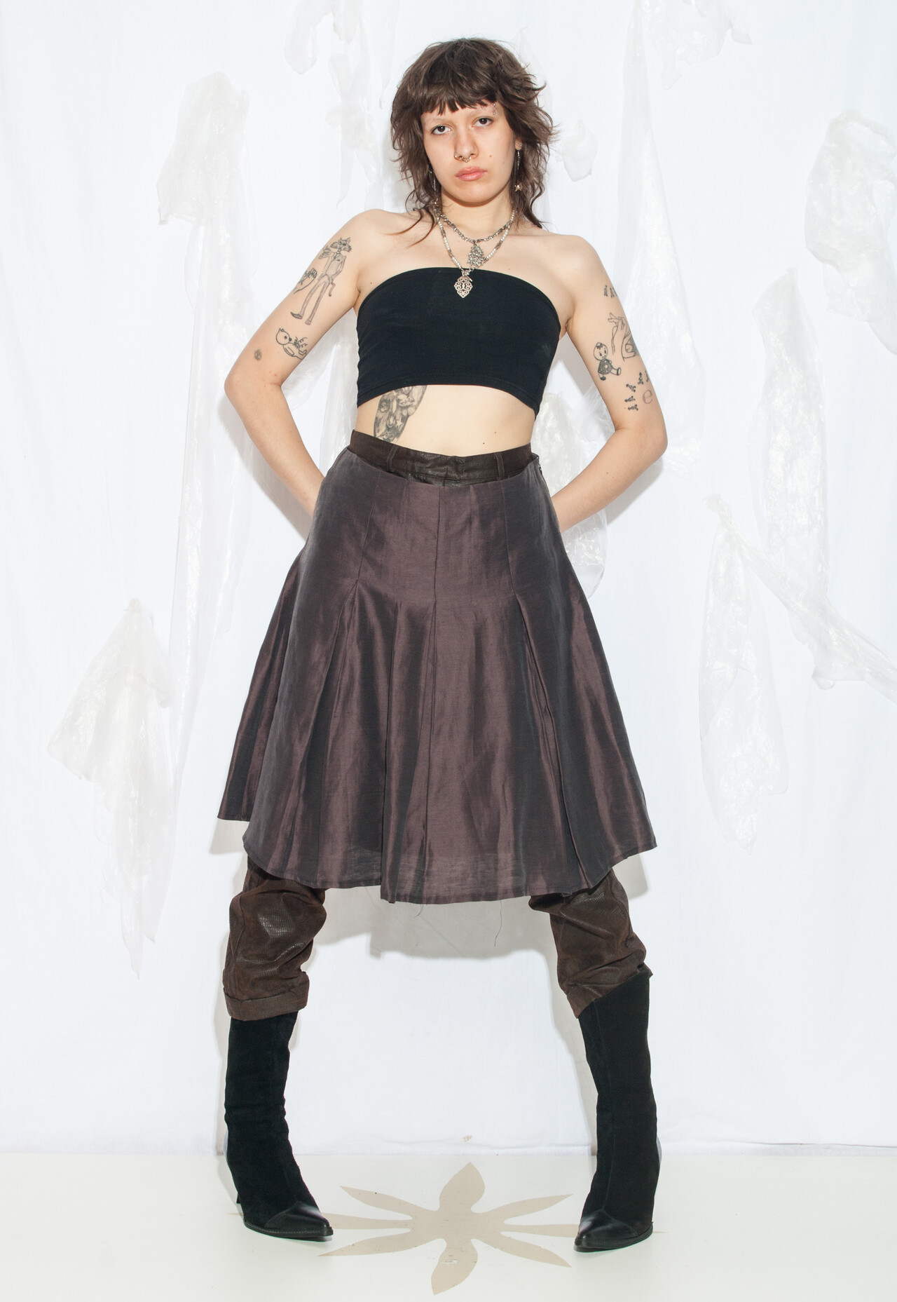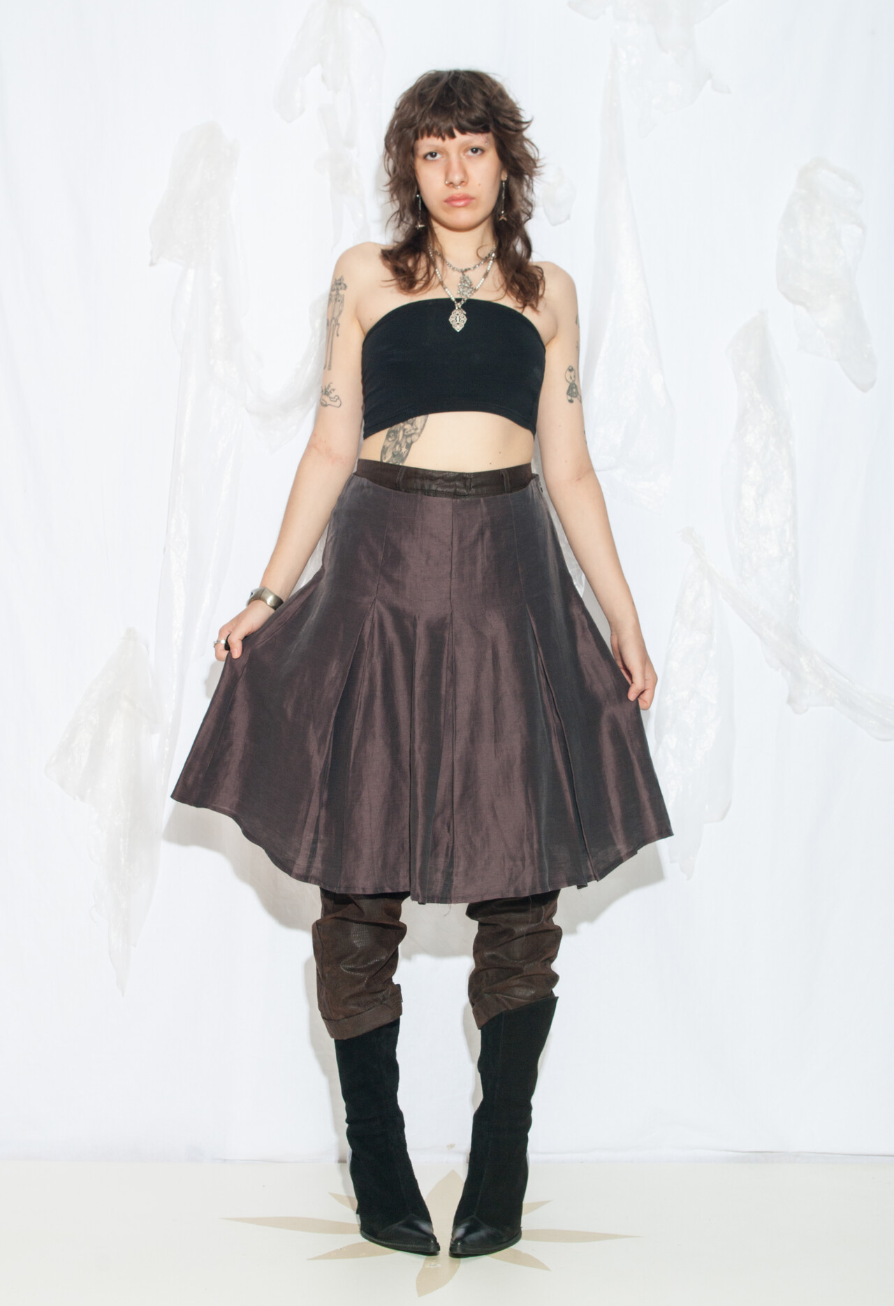 Vintage Y2K Linen Midi Skirt in Purple Brown