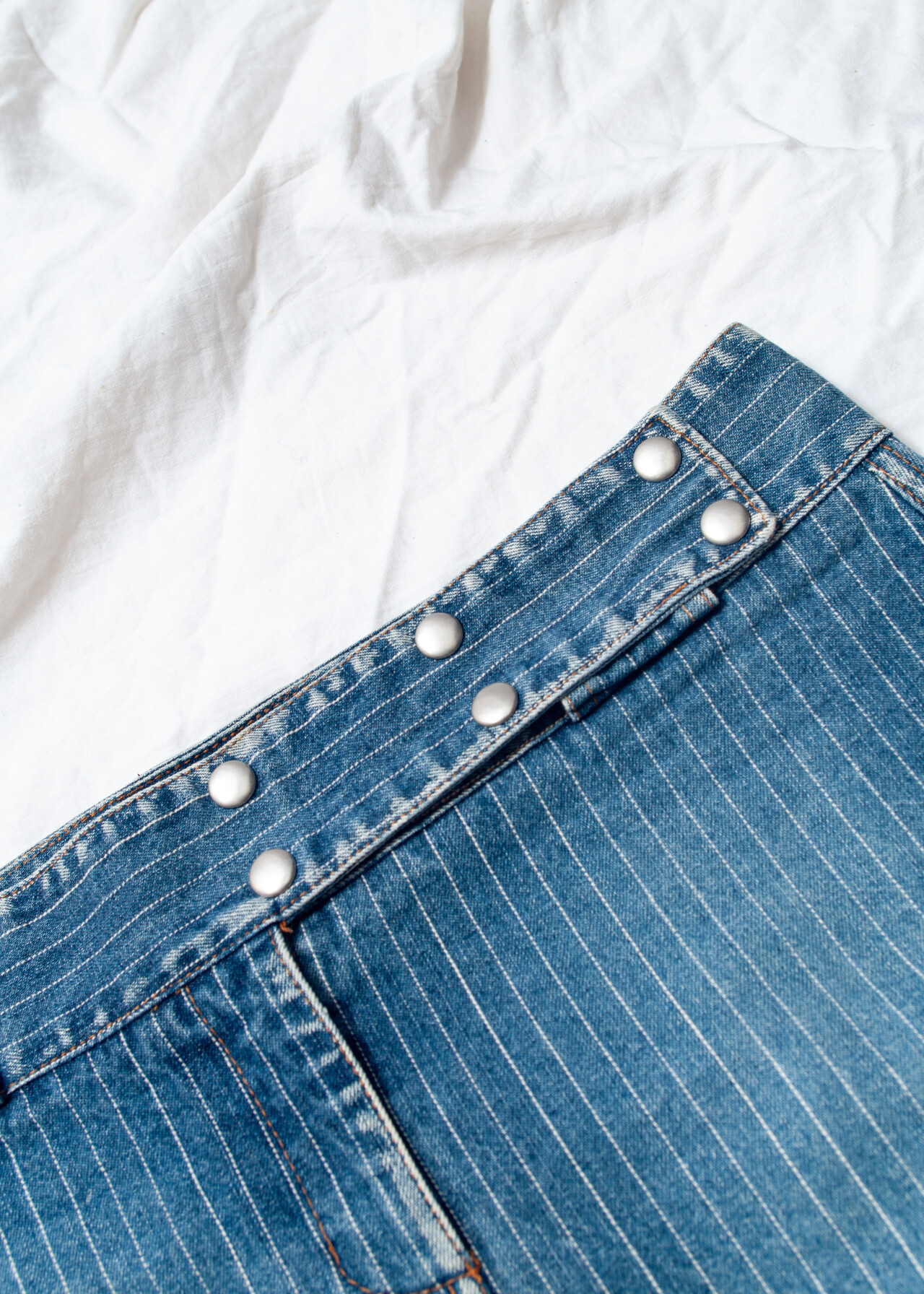 Tags: 2000s style clothing, cyber grunge outfit, denim micro skirt, low rise waist, mini skirt, pinstriped cotton, y2k vintage fashion