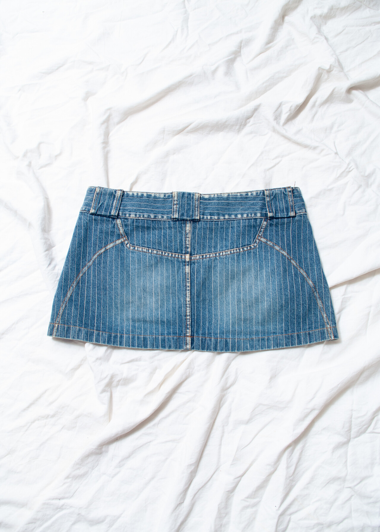 Vintage Y2K Pinstriped Denim Micro Skirt in Blue
