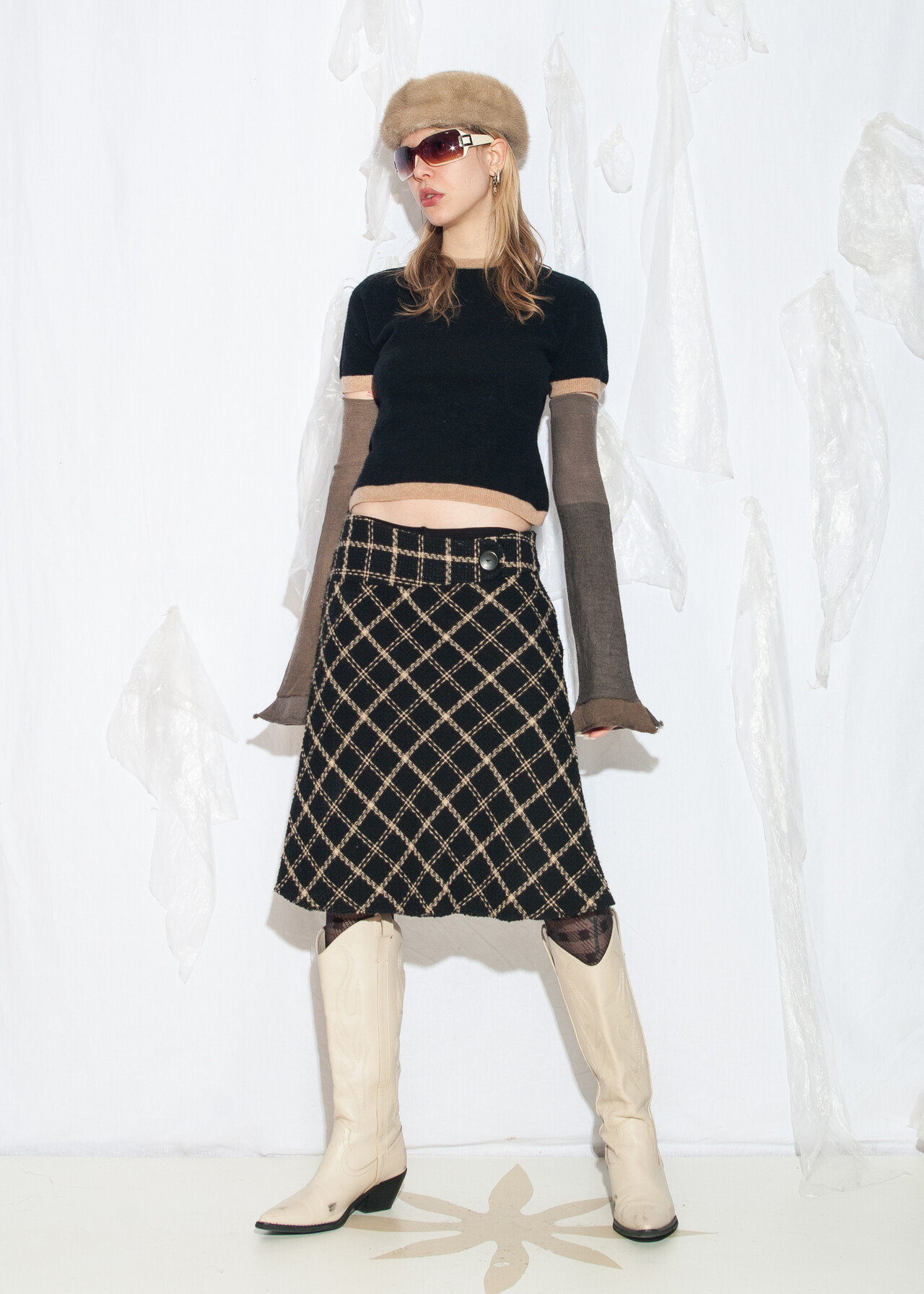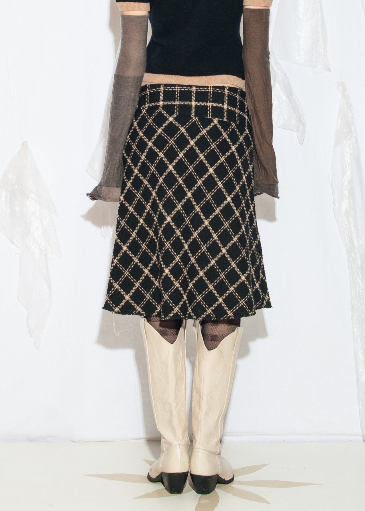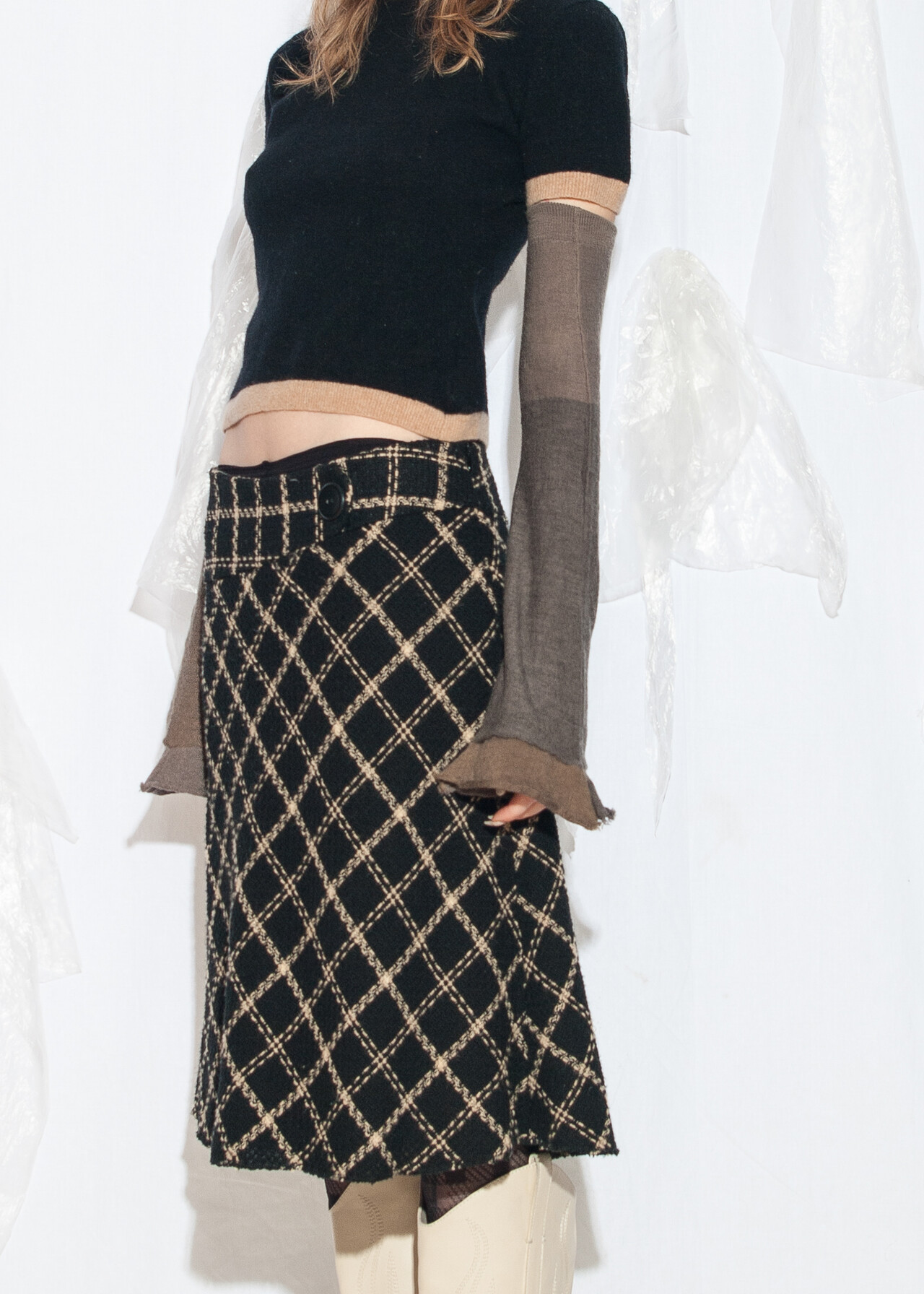 Tags: 2000s style fashion, checked skirt, dark preppy, European vintage, grunge outfit, low rise waist, office siren, plaid midi skirt, preppy goth style, y2k vintage clothing