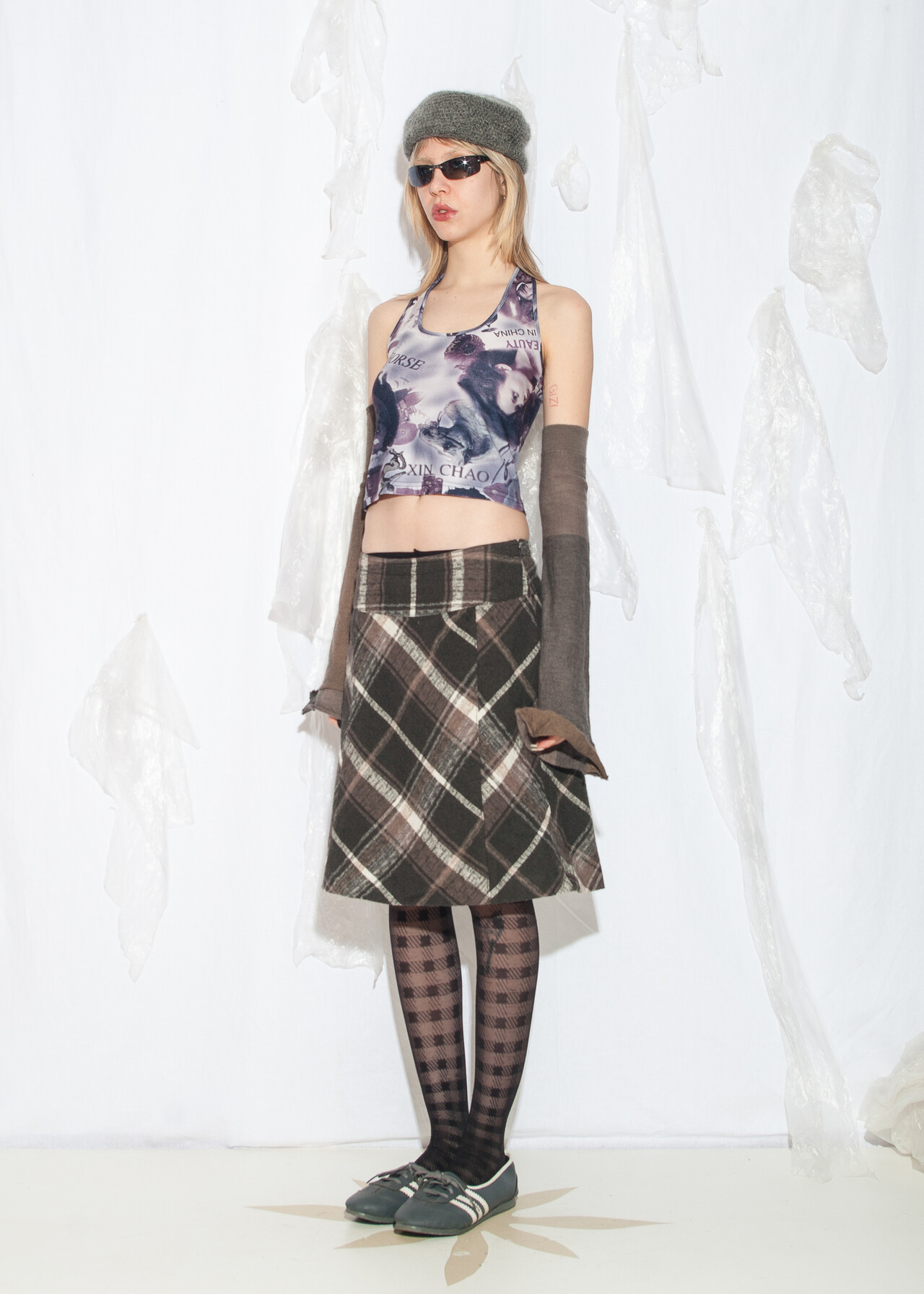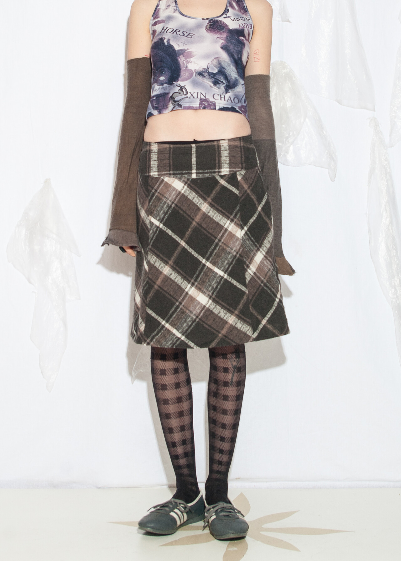 This Y2K vintage plaid skirt is your ticket to becoming the office siren of the early 2000s, with its wool blend and low rise waist ready to rock that preppy look. Whether you’re channeling your inner Clueless or just want to bring back that sweet nostalgia, this brown midi skirt has got your back.