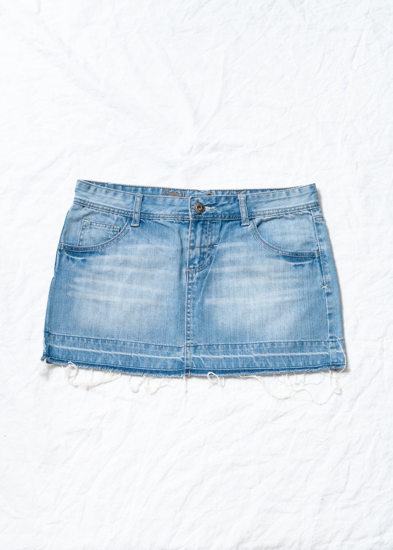 Vintage Y2K Stonewashed Denim Micro Skirt in Blue