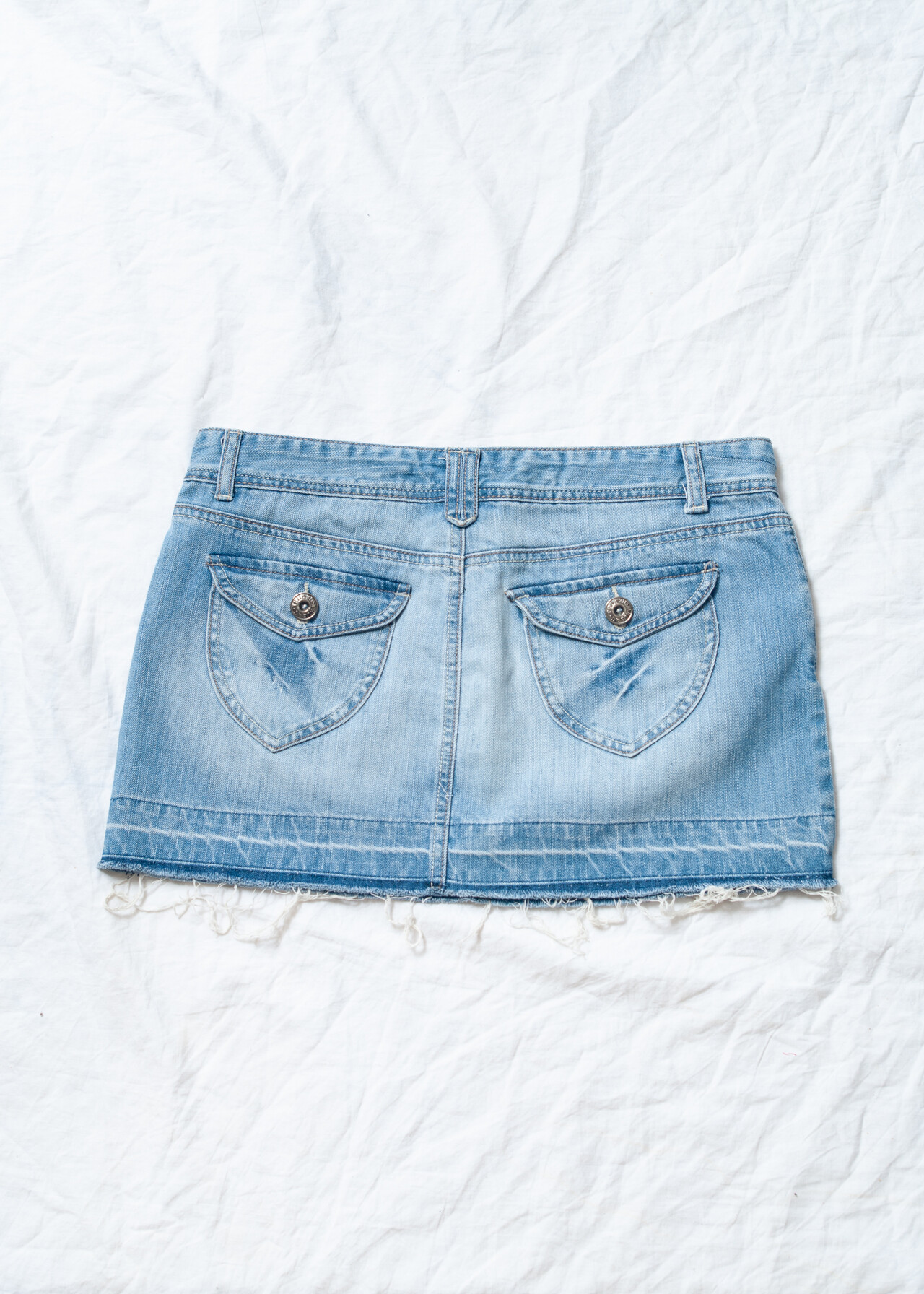 This Y2K vintage denim micro skirt is the ultimate low-rise, frayed-hem masterpiece that’ll have you channeling your inner 2000s pop star faster than you can say “Bye Bye Bye!”