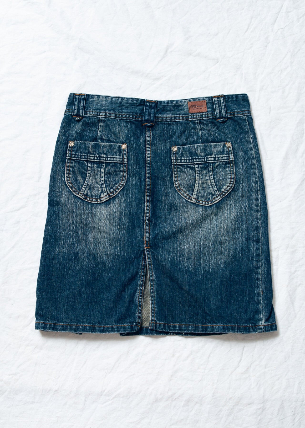 Vintage denim skirt 80s reworked cropped grunge skirt