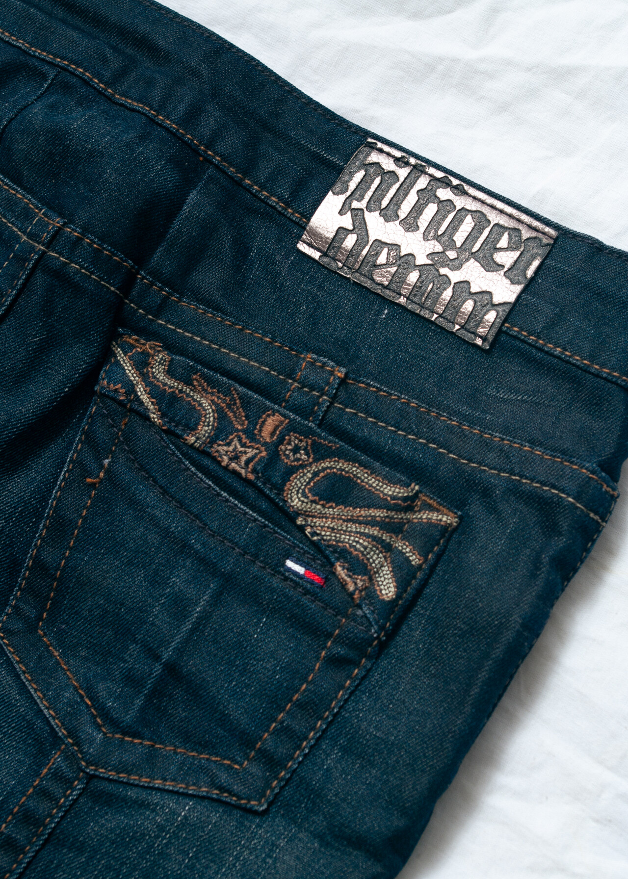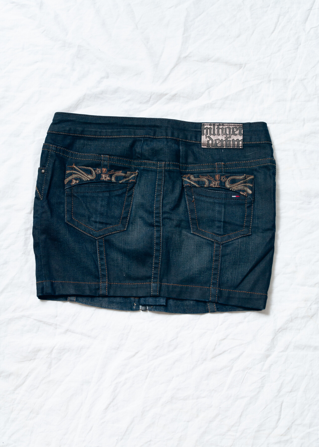 Y2K vintage denim mini skirt by Tommy Hilfiger – because who doesn’t want a low-waisted bottom that’s more iconic than your first flip phone?