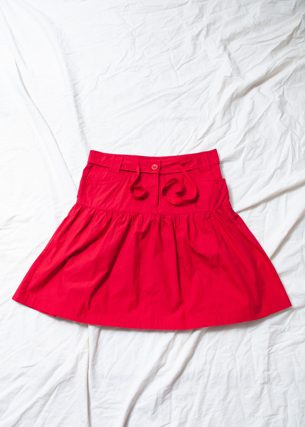 This Y2K vintage red cotton skirt is the frilly, low-waisted ticket you need for a whimsi twee time-traveling adventure back to the early 2000s.