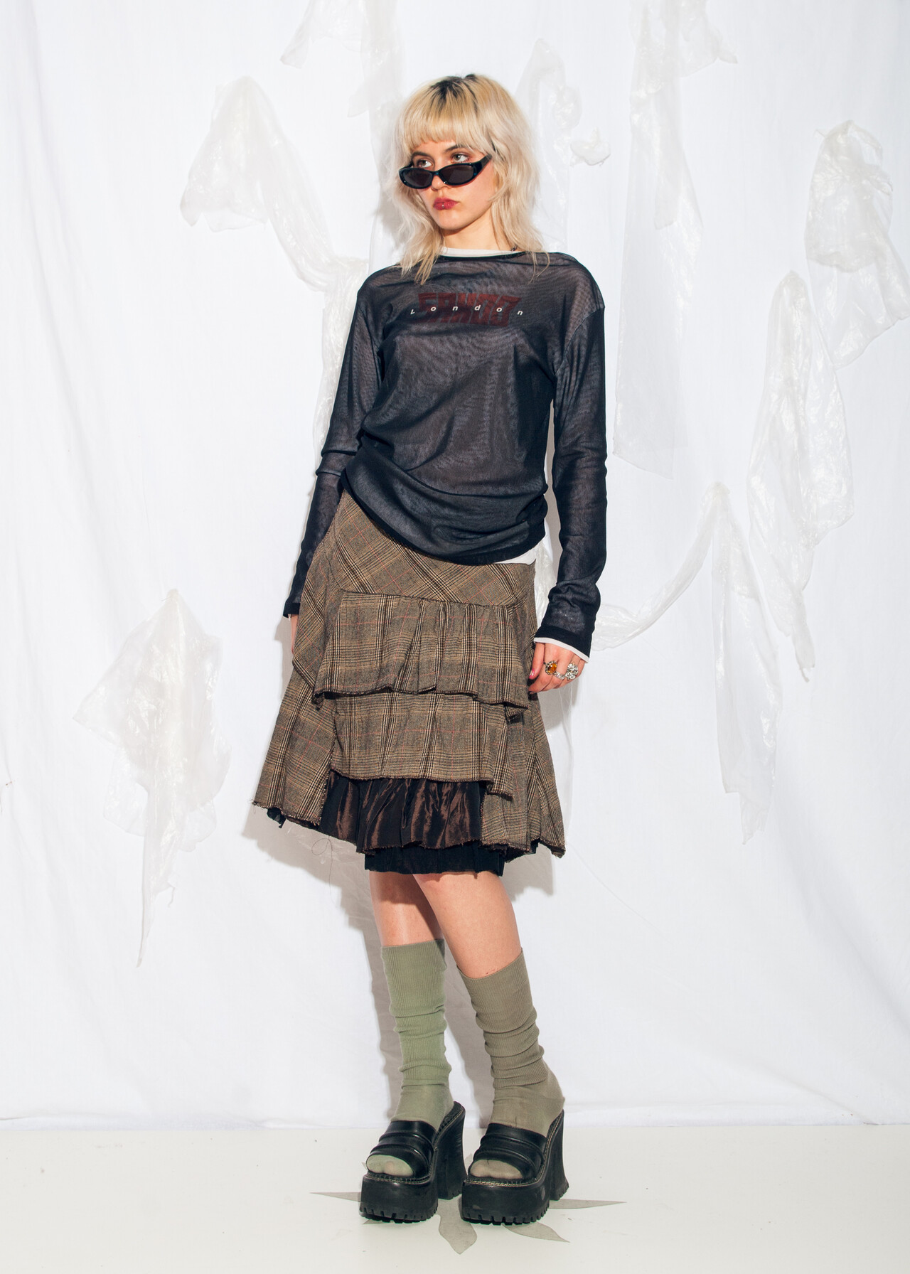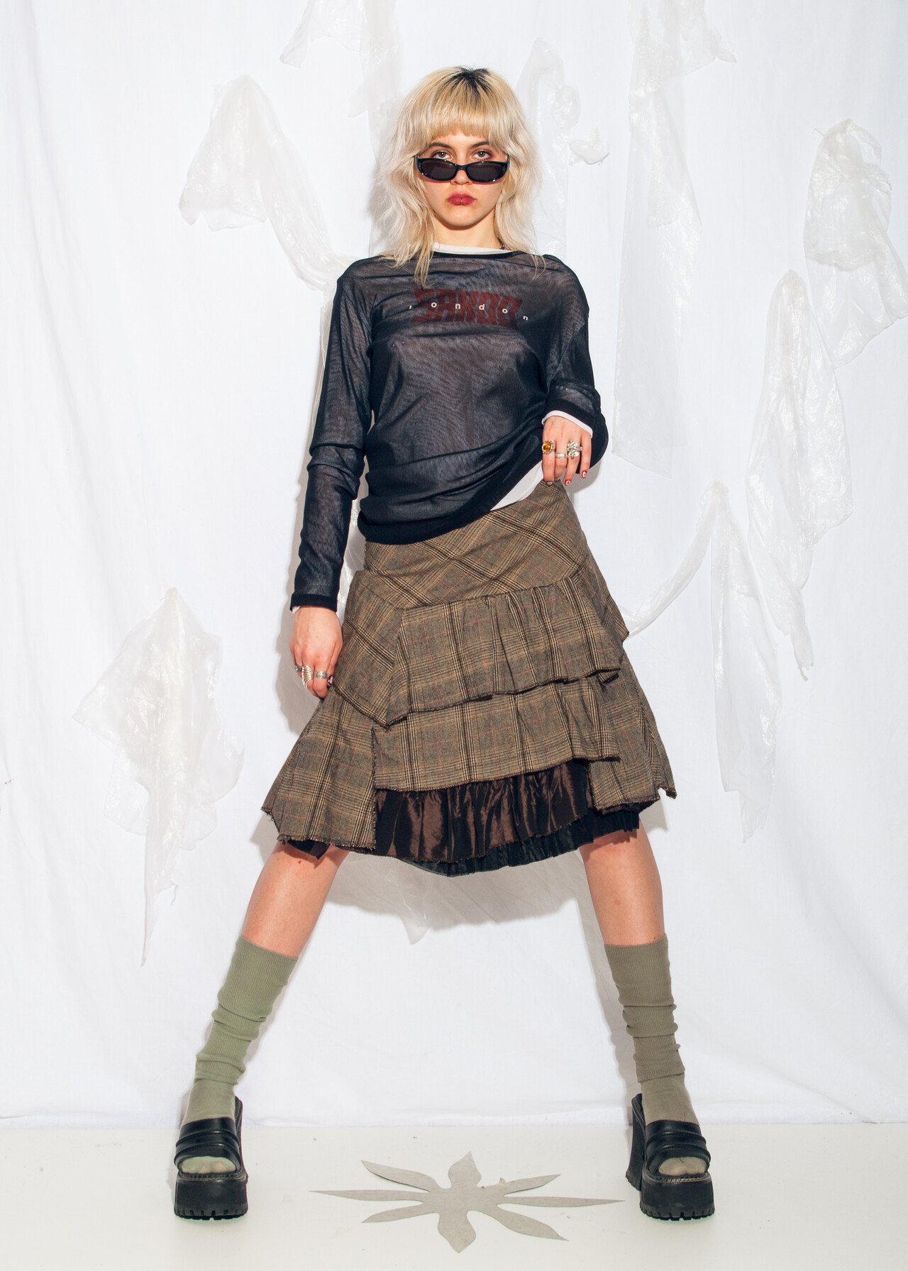 This Y2K vintage frilly skirt is the low-rise adventure your wardrobe’s been waiting for, straight from the era when dark coquette and whimsigoth ruled the fashion world!