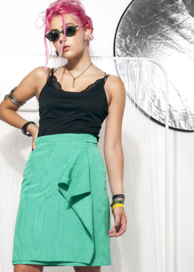 Vintage skirt 80s turquoise frill high-waisted midi skirt