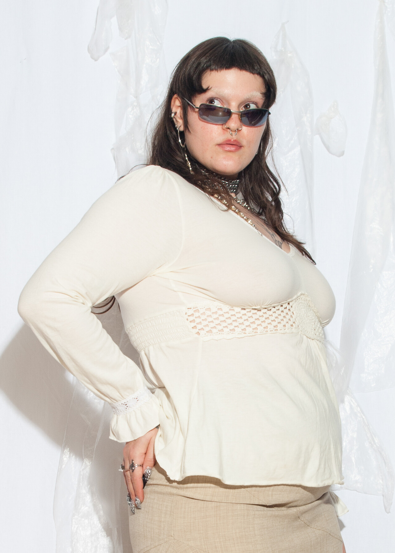 Tags: 2000s style fashion, beige cotton blouse, castlecore, crochet top, European vintage, natural fabric, romantic boho, whimsigoth, y2k vintage clothing