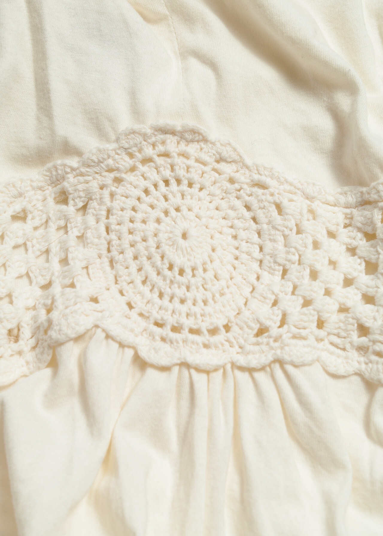 Vintage Y2K Beige Cotton Top with Crocheted Detail